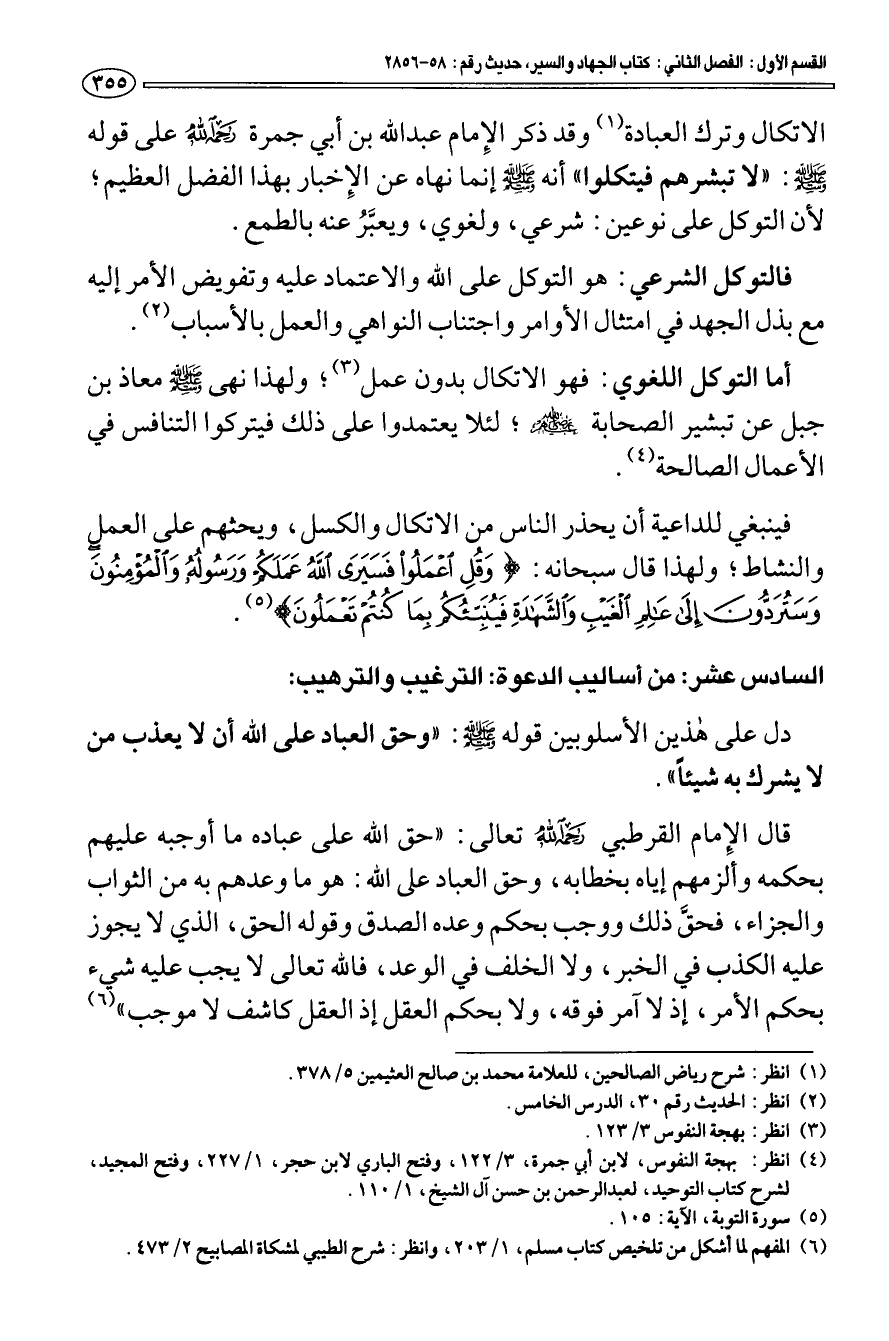 (¬4) انظر: بهجة النفوس، لابن أبي جمرة، 3/ 122، وفتح الباري لابن حجر، 1/ 227، وفتح المجيد، لشرح كتاب التوحيد، لعبد الرحمن بن حسن آل الشيخ، 1/ 110.