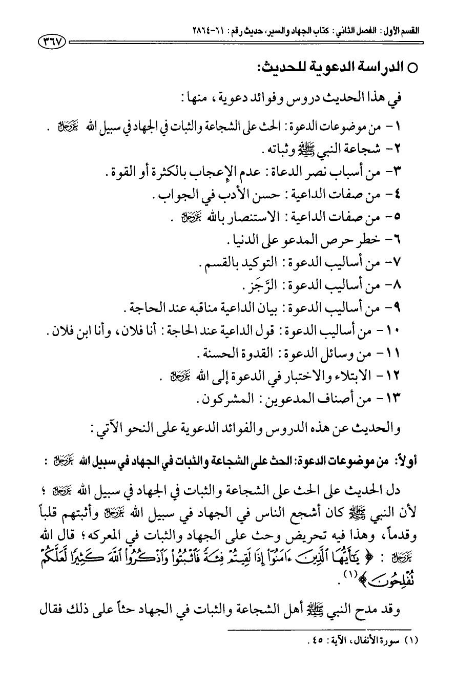 1 - من موضوعات الدعوة: الحث على الشجاعة والثبات في الجهاد في سبيل الله عز وجل.