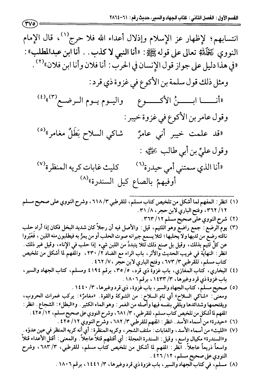 (¬1) انظر: المفهم لما أشكل من تلخيص كتاب مسلم، للقرطبي 3/ 618، وشرح النووي على صحيح مسلم 12/ 362، وفتح الباري لابن حجر، 8/ 31.