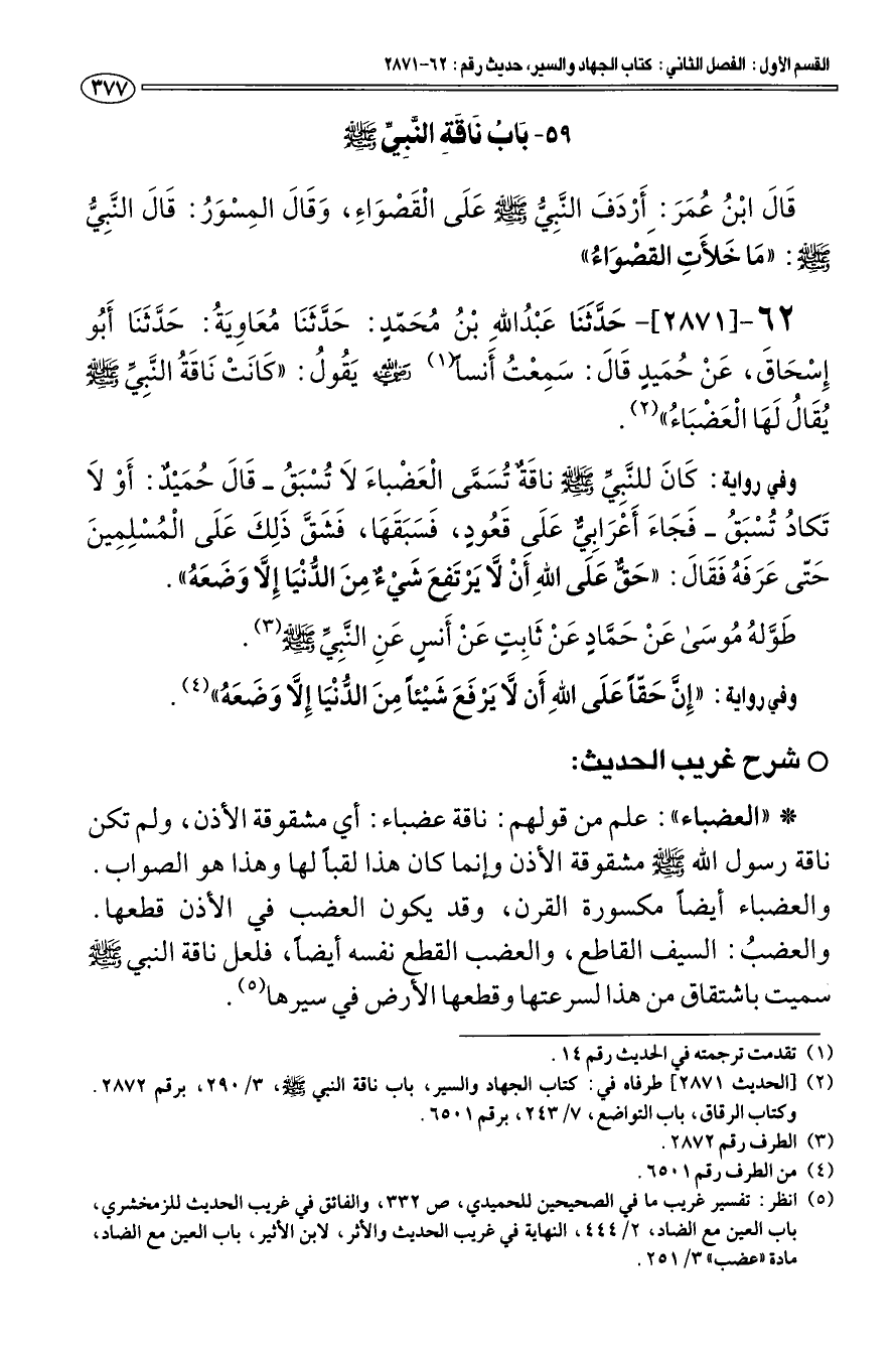 (¬2) [الحديث 2871]، طرفاه في: كتاب الجهاد والسير، باب ناقة النبي صلى الله عليه وسلم، 3/ 290، برقم 2872. وكتاب الرقاق، باب التواضع، 7/ 243، برقم 6501.