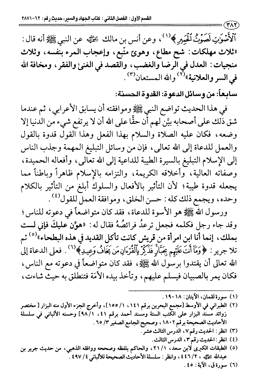 (¬4) الطبقات الكبرى لابن سعد، 1/ 21، والحاكم بلفظه وصححه ووافقه الذهبي، من حديث جرير بن عبد الله رضي الله عنه، 2/ 446، وانظر: سلسلة الأحاديث الصحيحة للألباني 4/ 497.