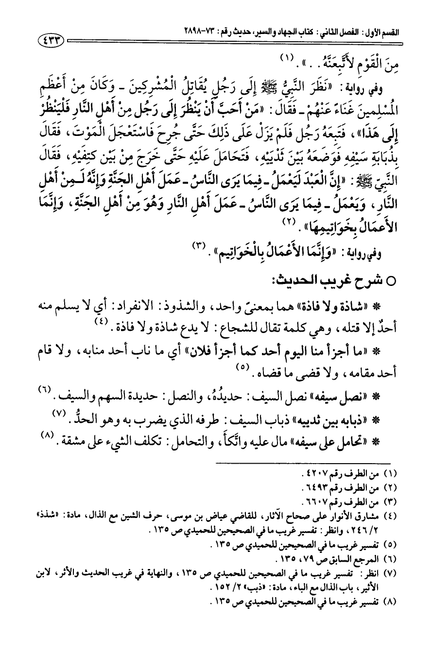 (¬4) مشارق الأنوار على صحاح الآثار، للقاضي عياض بن موسى، حرف الشين مع الذال، مادة: " شذذ " 2/ 246، وانظر: تفسير غريب ما في الصحيحين للحميدي ص 135.
