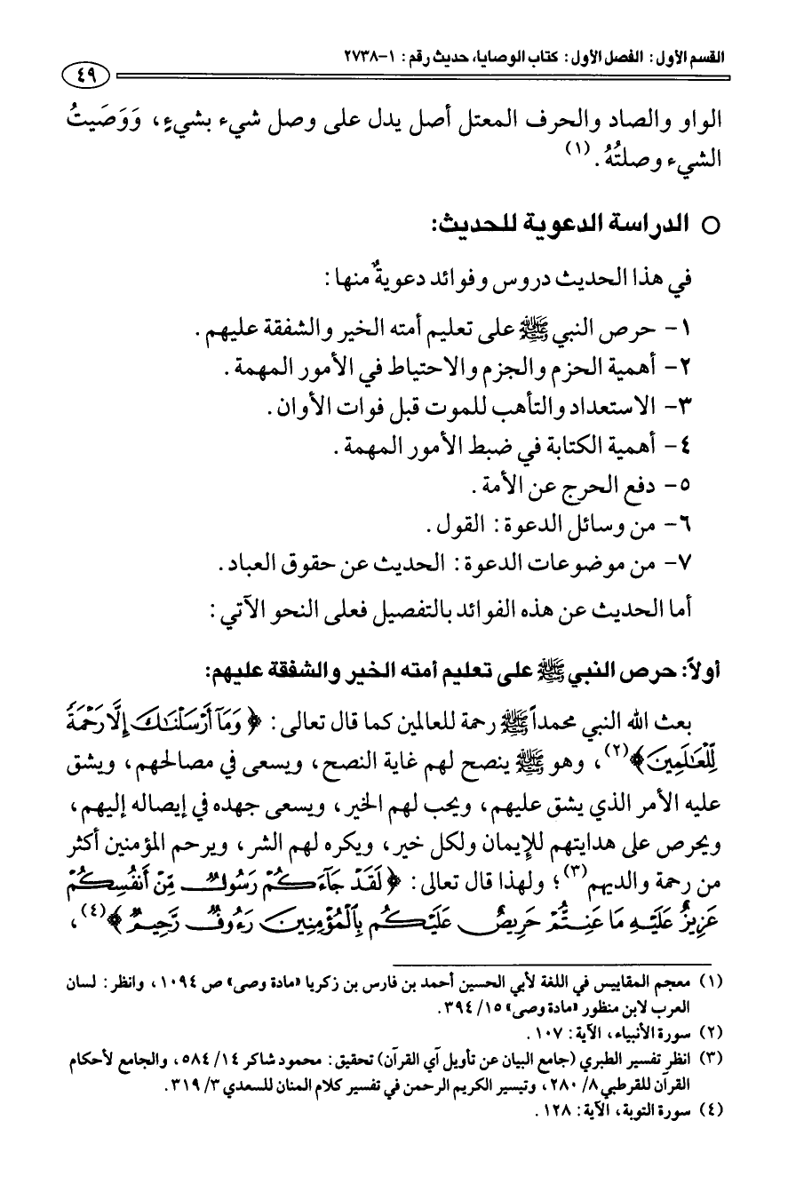 (¬1) معجم المقاييس في اللغة لأبي الحسين أحمد بن فارس بن زكريا " مادة وصى " ص 1094، وانظر: لسان العرب لابن منظور " مادة وصى " 15/ 394.