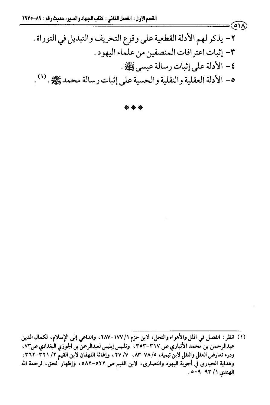 (¬1) انظر: الفصل في الملل والأهواء والنحل، لابن حزم 1/ 177 - 287، والداعي إلى الإسلام، لكمال الدين عبد الرحمن بن محمد الأنباري ص 317 - 353، وتلبيس إبليس لعبد الرحمن بن الجوزي البغدادي ص 73، ودرء تعارض العقل والنقل لابن تيمية، 5/ 78 - 83، 7/ 27، وإغاثة اللهفان لابن القيم 2/ 321 - 362، وهداية الحيارى في أجوبة اليهود والنصارى، لابن القيم ص 522 - 582، وإظهار الحق، لرحمة الله الهندي 1/ 93 - 509.
