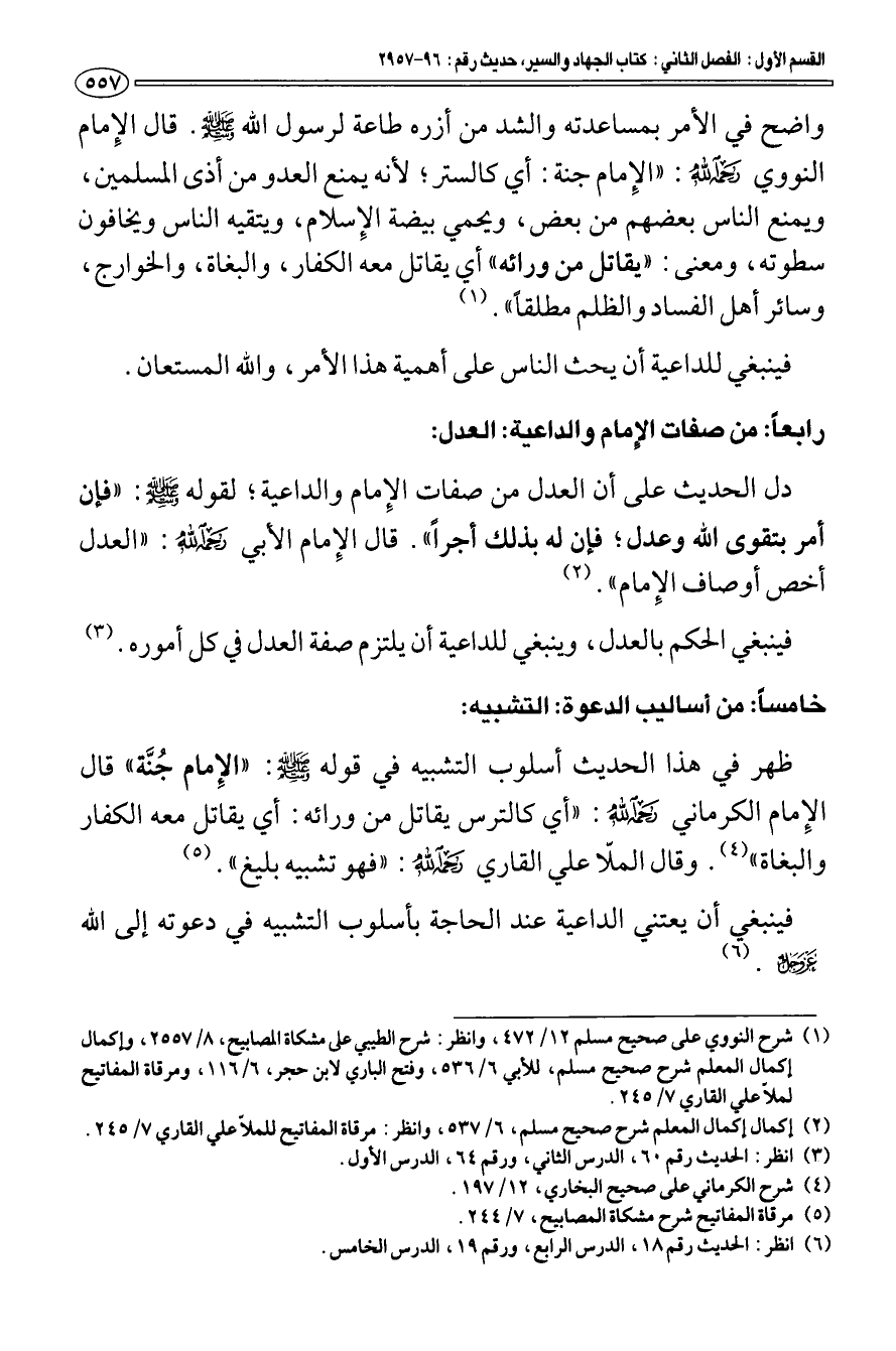 (¬1) شرح النووي على صحيح مسلم 12/ 472، وانظر: شرح الطيبي على مشكاة المصابيح، 8/ 2557، وإكمال إكمال المعلم شرح صحيح مسلم، للأبي 6/ 536، وفتح الباري لابن حجر، 6/ 116، ومرقاة المفاتيح لملا علي القاري 7/ 245.