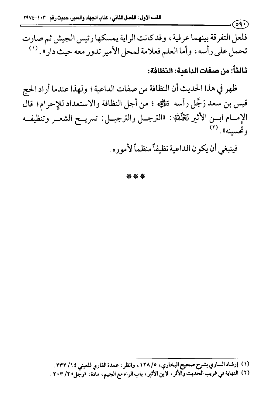 ثالثا: من صفات الداعية: النظافة: ظهر في هذا الحديث أن النظافة من صفات الداعية؛ ولهذا عندما أراد الحج قيس بن سعد رَجَّل رأسه رضي الله عنه؛ من أجل النظافة والاستعداد للإِحرام؛ قال الإِمام ابن الأثير رحمه الله: " الترجل والترجيل: تسريح الشعر وتنظيفه وتحسينه " (¬2).