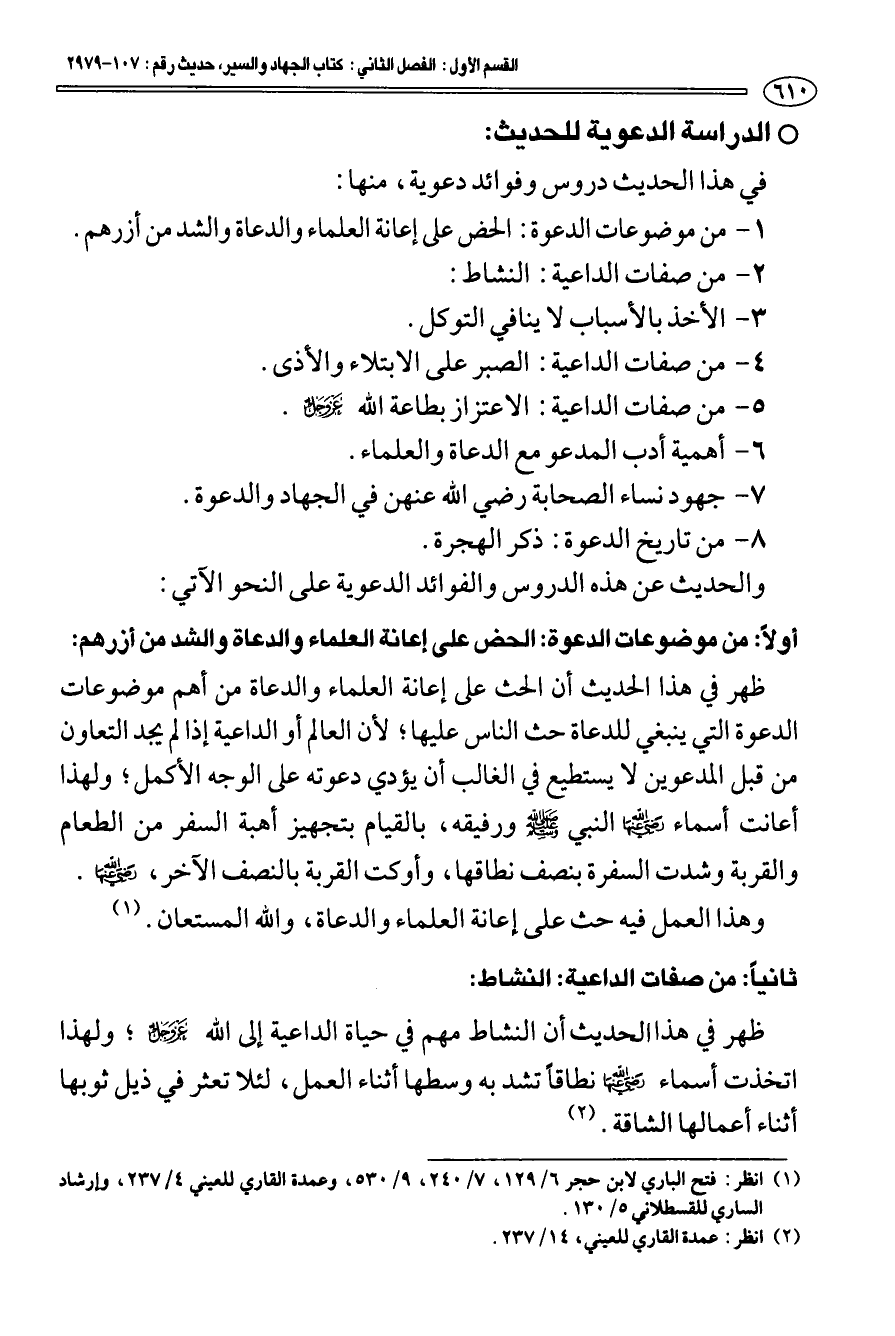 (¬1) انظر: فتح الباري لابن حجر 6/ 129، 7/ 240، 9/ 530، وعمدة القاري للعيني 4/ 237، وإرشاد الساري للقسطلاني 5/ 130.
