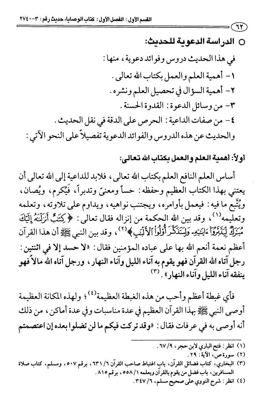 1 - أهمية العلم والعمل بكتاب الله تعالى.