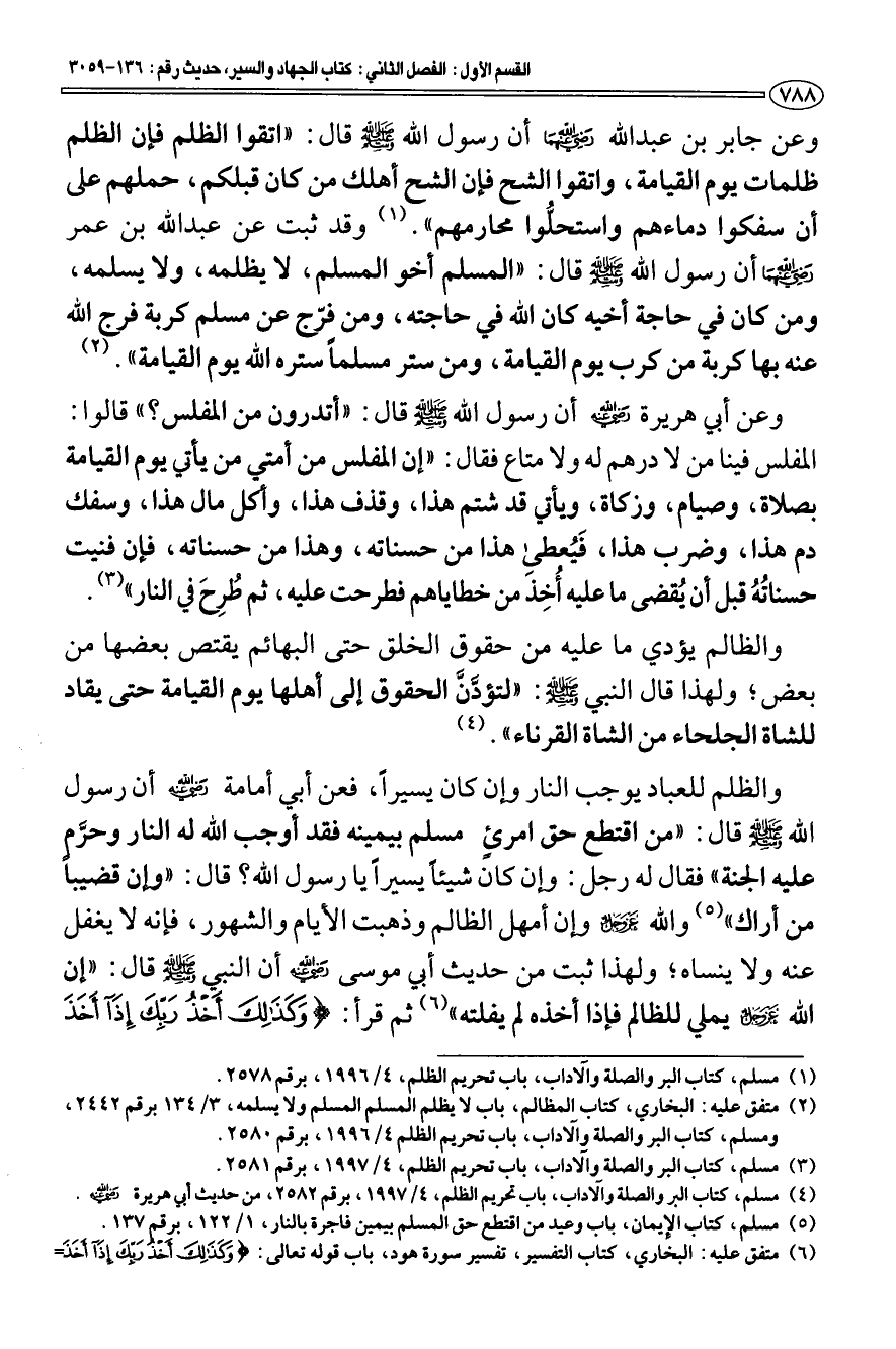 (¬3) مسلم، كتاب البر والصلة والآداب، باب تحريم الظلم، 4/ 1997، برقم 2581.