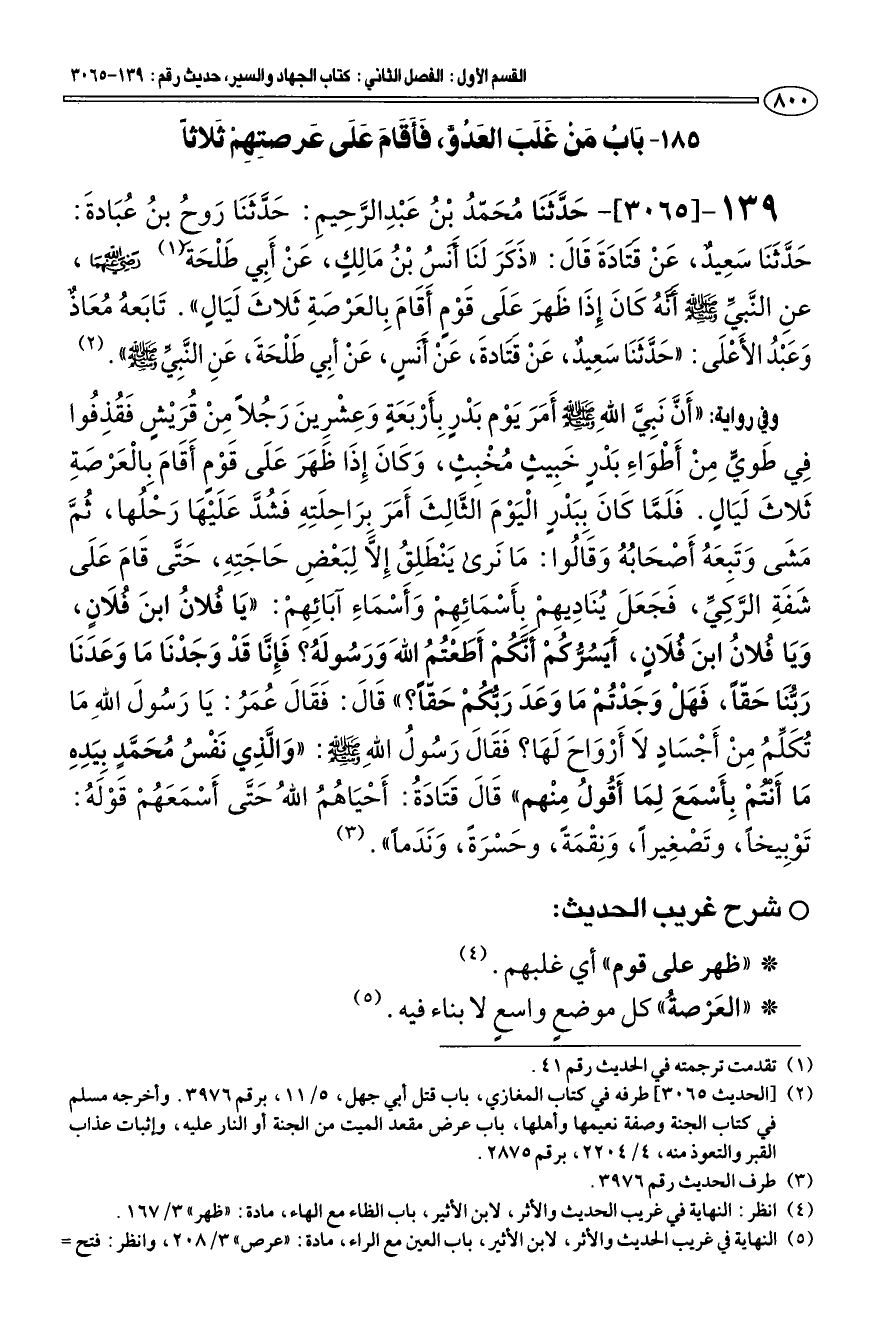 (¬2) [الحديث 3065] طرفه في كتاب المغازي، باب قتل أبي جهل، 5/ 11، برقم 3976. وأخرجه مسلم في كتاب الجنة وصفة نعيمها وأهلها، باب عرض مقعد الميت من الجنة أو النار عليه، وإثبات عذاب القبر والتعوذ منه، 4/ 2204، برقم 2875.