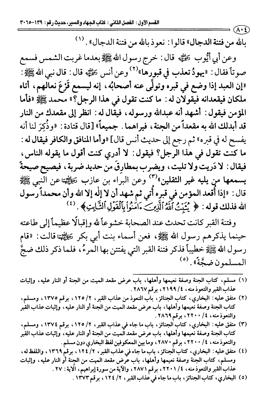 (¬5) البخاري، كتاب الجنائز، باب ما جاء في عذاب القبر، 2/ 124، برقم 1373.