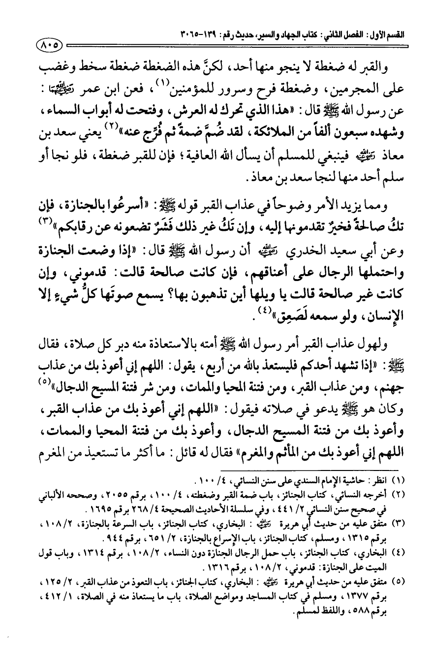 (¬2) أخرجه النسائي، كتاب الجنائز، باب ضمة القبر وضغطته، 4/ 100، برقم 2055، وصححه الألباني في صحيح سنن النسائي 2/ 441، وفي سلسلة الأحاديث الصحيحة 4/ 268 برقم 1695.