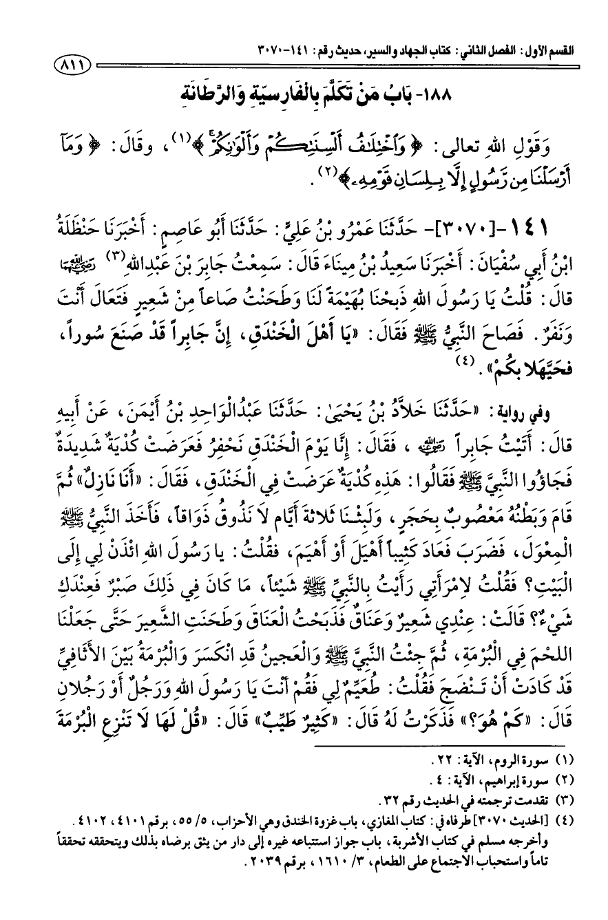 188 - باب من تكلم بالفارسية والرطنة
