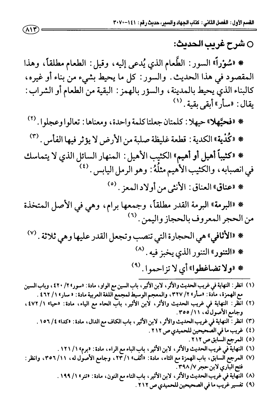 (¬7) المرجع السابق، باب الهمزة مع الثاء، مادة: " أثف " 1/ 23، وجامع الأصول له، 11/ 356، وانظر: فتح الباري لابن حجر 7/ 398.