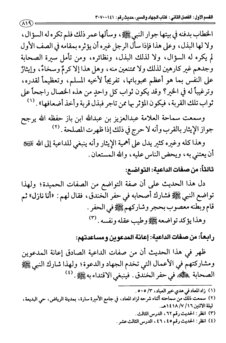 (¬2) سمعت ذلك من سماحته أثناء شرحه لزاد المعاد، في جامع الأميرة سارة، بمدينة الرياض، حي البديعة، ليلة الاثنين 16/ 7 / 1418 هـ.