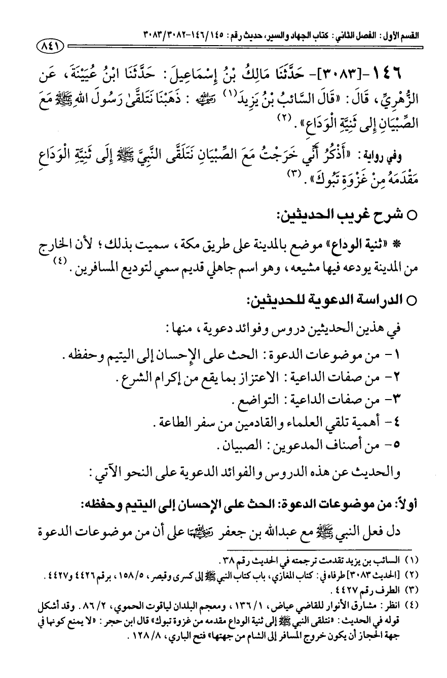 146 - [3083] حدّثنا مالك بن إسماعيل: حدّثنا ابن عيينة، عن الزهريّ، قال: «قال السّائب بن يزيد (¬1).