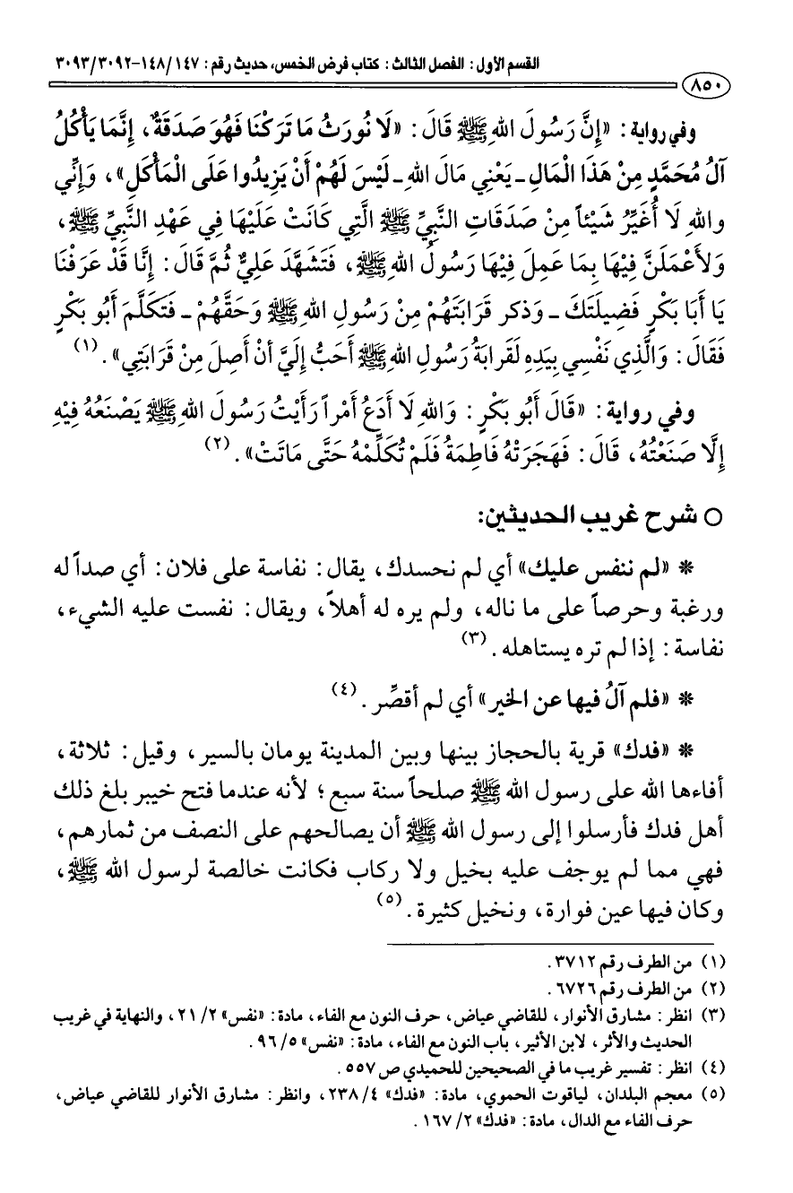 (¬5) معجم البلدان، لياقوت الحموي، مادة: "فدك" 4/ 238، وانظر: مشارق الأنوار للقاضي عياض، حرف الفاء مع الدال، مادة. "فدك" 2/ 167.