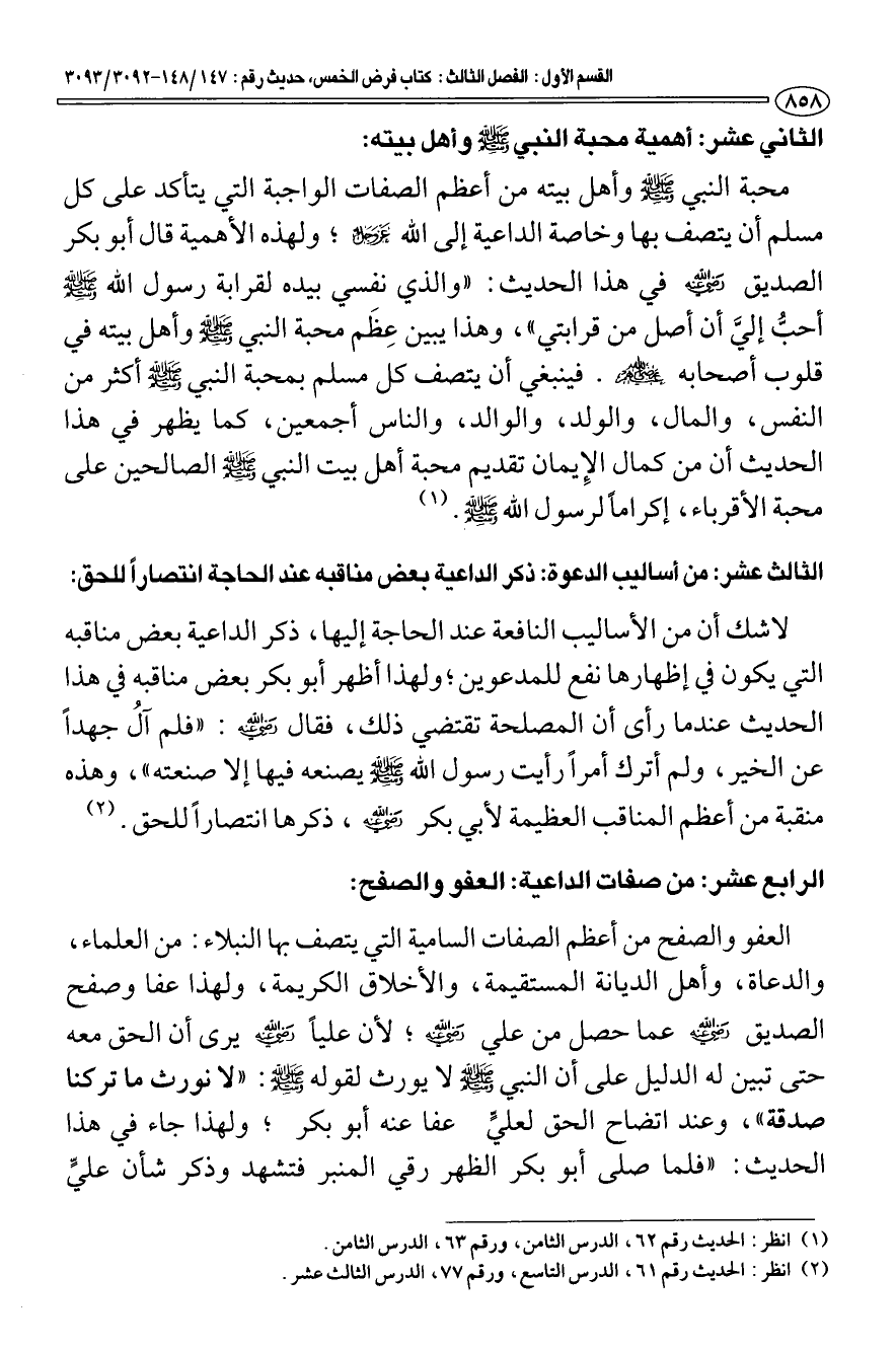 (¬2) انظر. الحديث رقم 61، الدرس التاسع، ورقم 77، الدرس الثالث عشر.