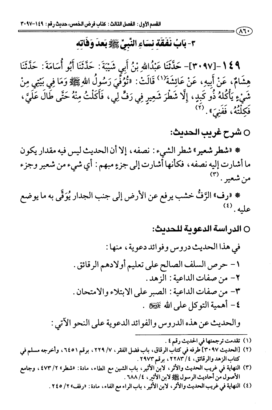 149 - [3097] حدّثنا عبد الله بن أبي شيبة: حدّثنا أبو أسامة: حدّثنا هشام، عن أبيه، عن عائشة رضي الله عنها (¬1).