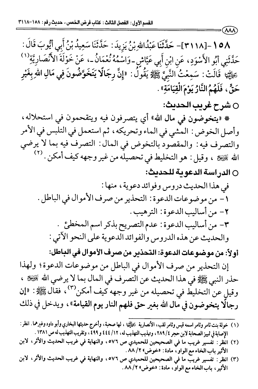 (¬3) انظر: تفسير غريب ما في الصحيحين للحميدي ص 576، والنهاية في غريب الحديث والأثر، لابن الأثير، باب الخاء مع الواو، مادة: "خوض" 2/ 88.