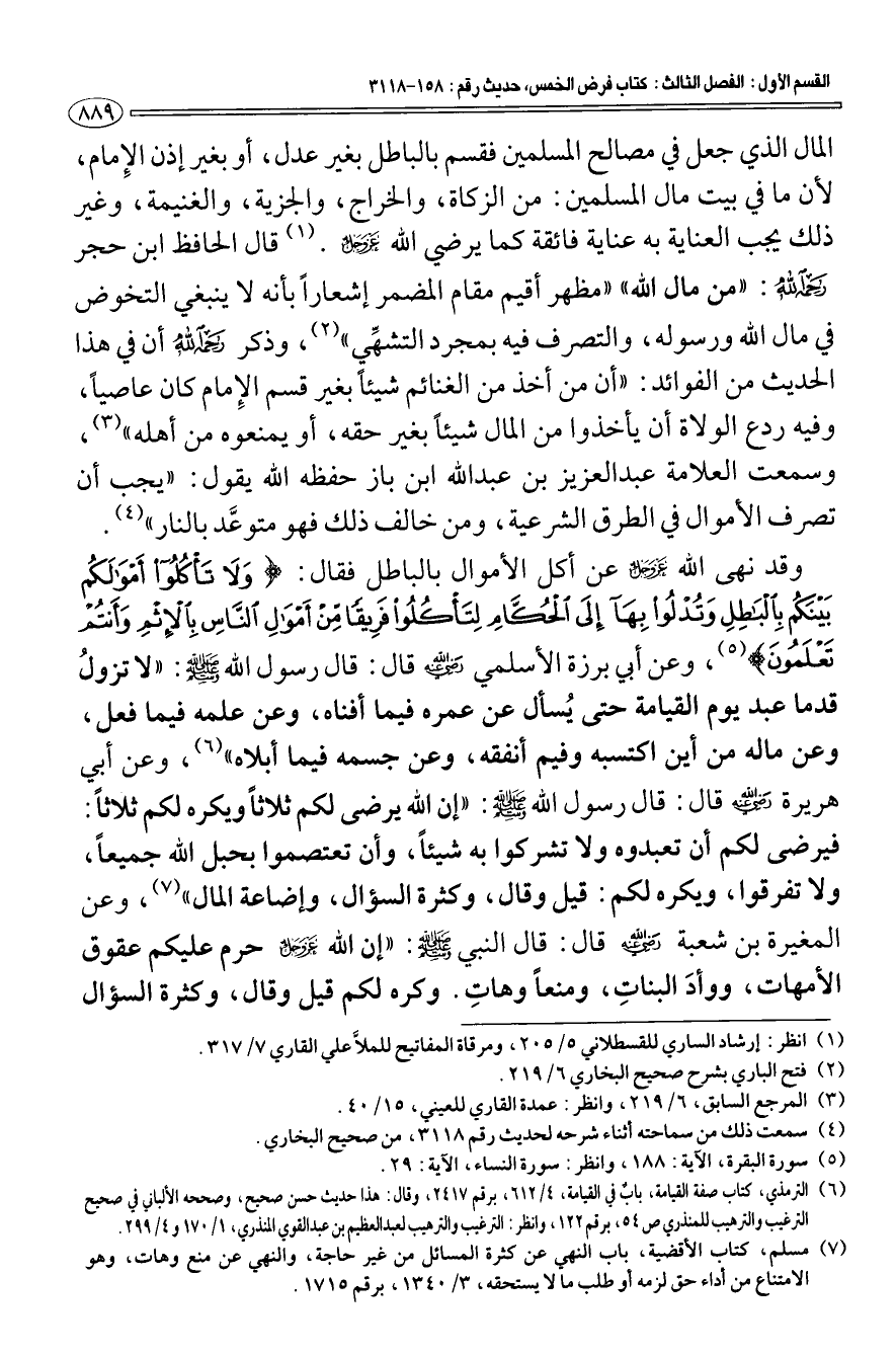 (¬1) انظر: إرشاد الساري للقسطلاني 5/ 205، ومرقاة المفاتيح للملا علي القاري 7/ 317.
