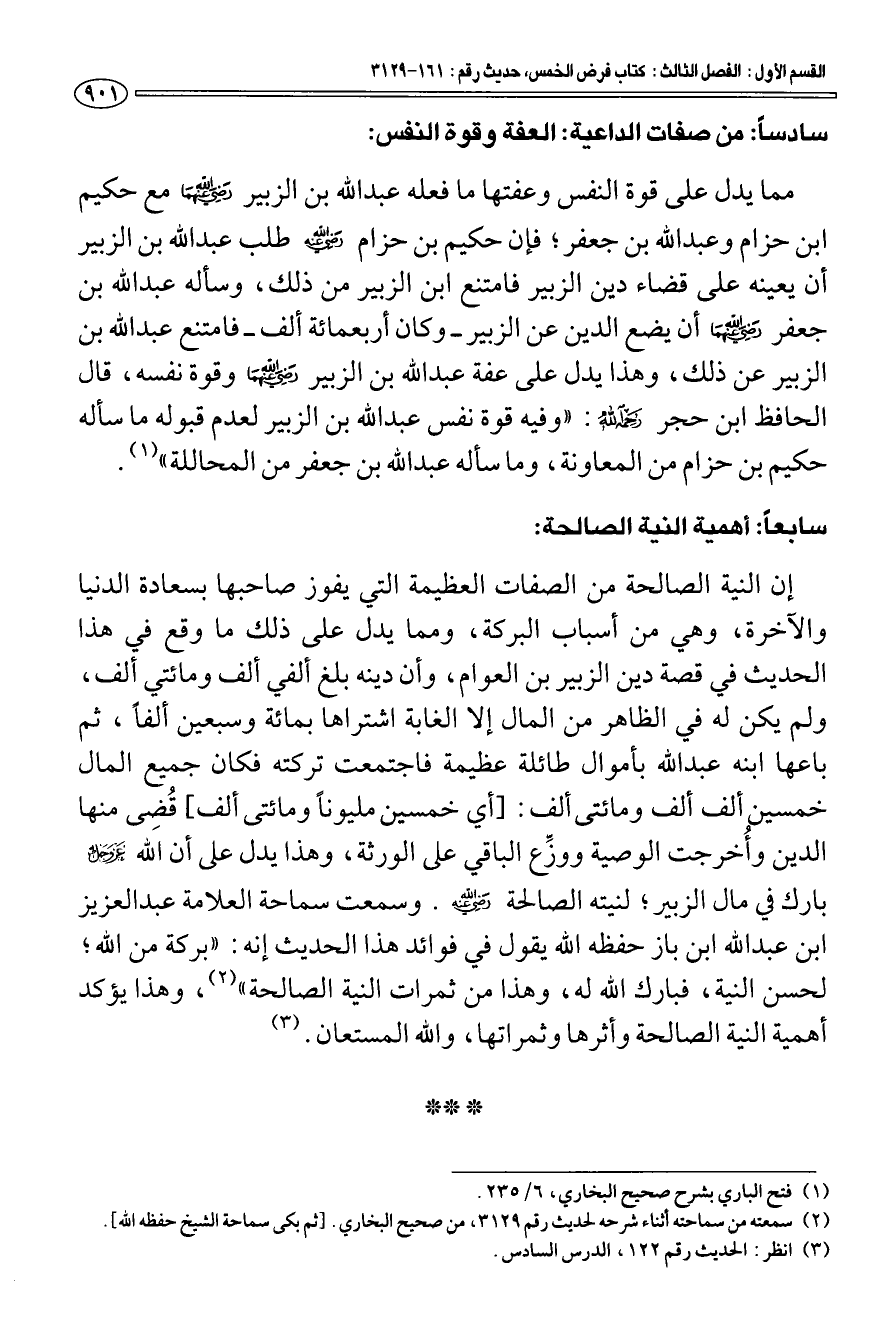 (¬2) سمعته من سماحته أثناء شرح الحديث رقم 3129، من صحيح البخاري. [ثم بكى سماحة الشيخ حفظه الله].