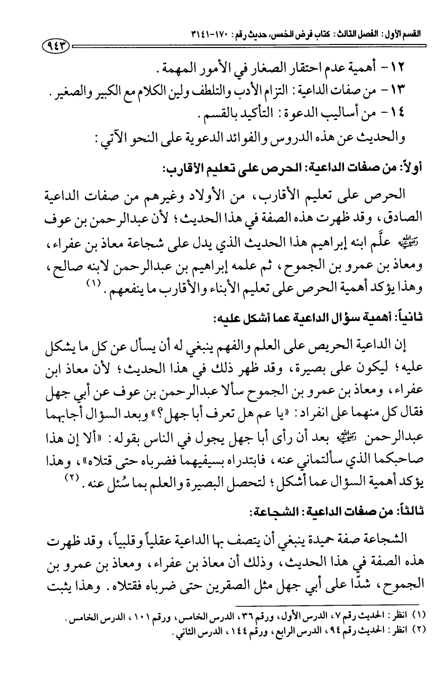 (¬2) انظر: الحديث رقم 94، الدرس الرابع، ورقم 144، الدرس الثاني.