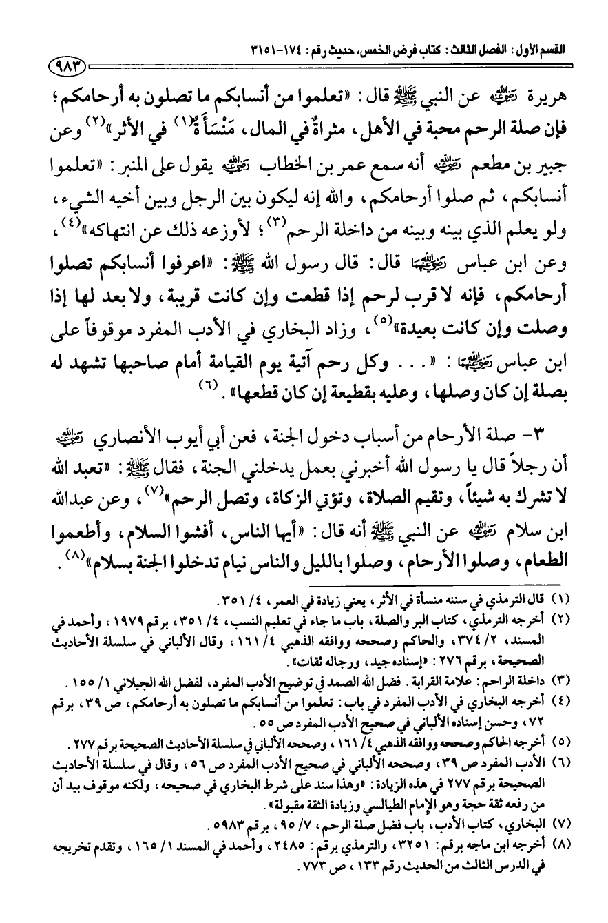 (¬7) البخاري، كتاب الأدب، باب فضل صلة الرحم، 7/ 95، برقم 5983.