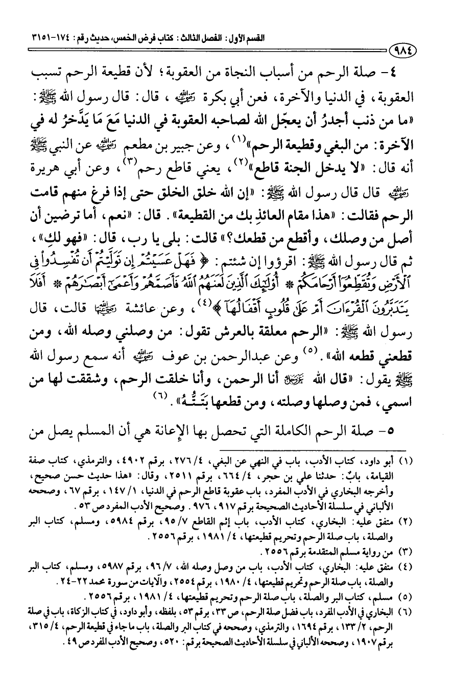 (¬5) مسلم، كتاب البر والصلة، باب صلة الرحم وتحريم قطيعتها، 4/ 1981، برقم 2556.