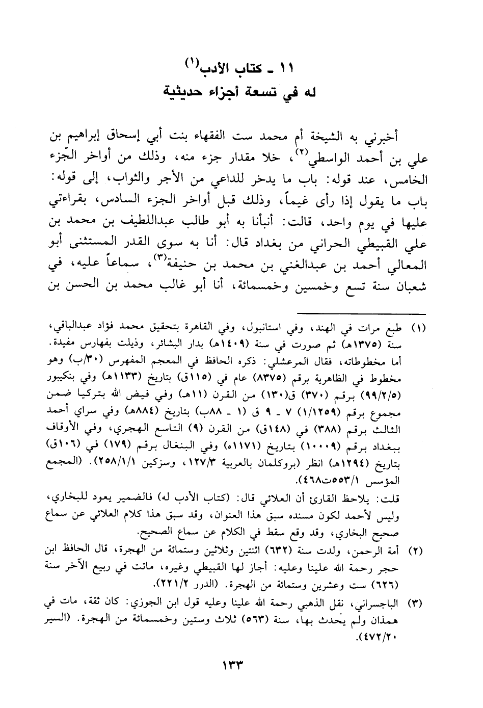 كِتَابُ الأَدَبِ لَهُ فِي تِسْعَةِ أَجْزَاءٍ حَدِيثِيَّةٍ