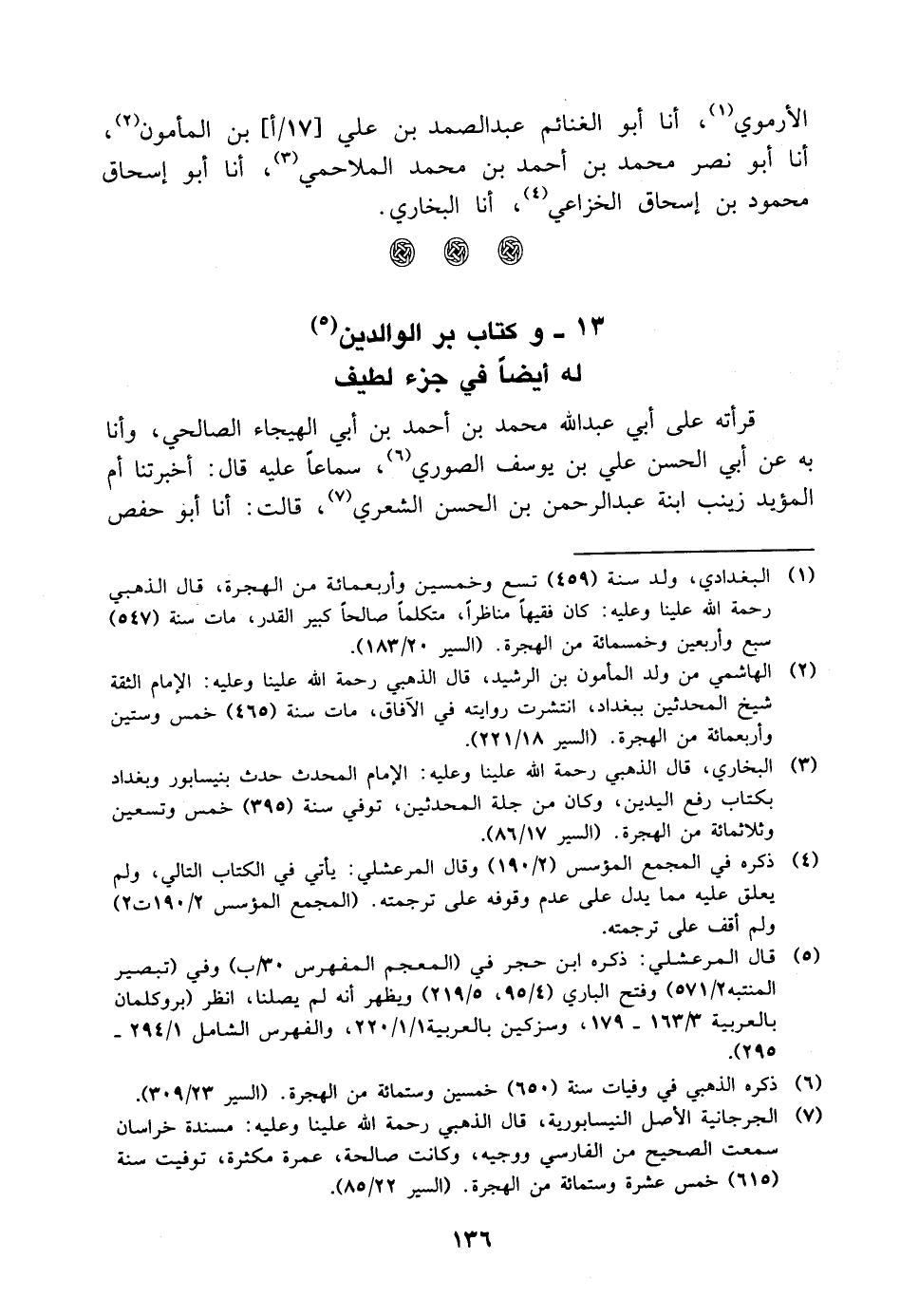 وَكِتَابُ بِرِّ الْوَالِدَيْنِ لَهُ أَيْضًا فِي جُزْءٍ لَطِيفٍ