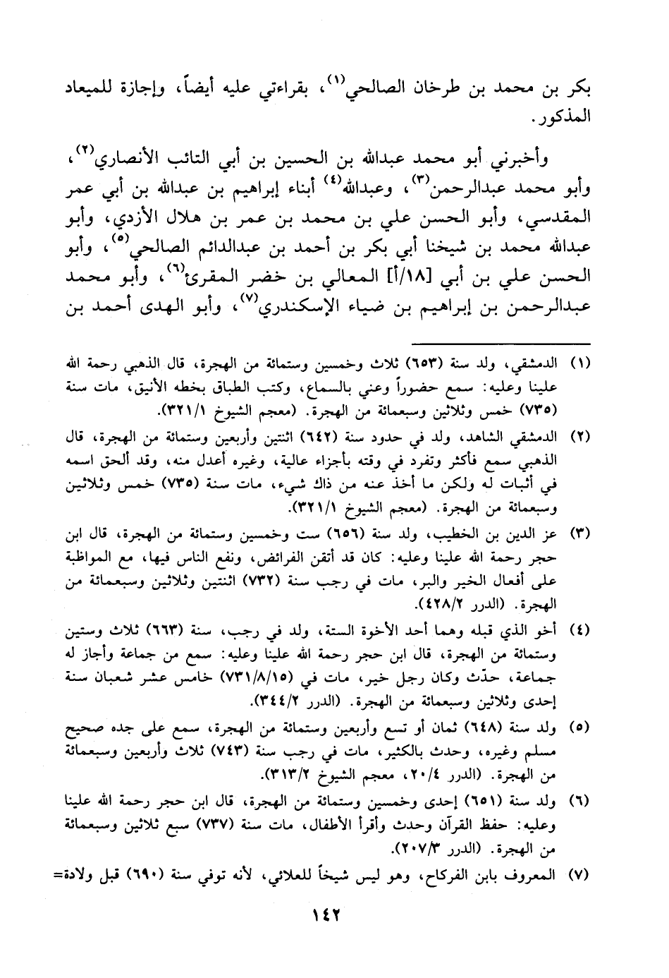 بَكْرِ بْنِ مُحَمَّدِ بْنِ طَرْخَانَ الصَّالِحِيُّ، بِقِرَاءَتِي عَلَيْهِ أَيْضًا وَإِجَازَةً لِلْمِيعَادِ الْمَذْكُورِ وَأَخْبَرَنِي أَبُو مُحَمَّدٍ عَبْدُ اللَّهِ بْنُ الْحُسَيْنِ بْنُ أَبِي التَّائِبِ الأَنْصَارِيُّ، وَأَبُو مُحَمَّدٍ عَبْدُ الرَّحْمَنِ، وَعَبْدُ اللَّهِ أَبْنَاءُ إِبْرَاهِيمَ بْنِ عَبْدِ اللَّهِ بْنِ أَبِي عُمَرَ الْمَقْدِسِيُّ، وَأَبُو الْحَسَنِ عَلِيُّ بْنُ مُحَمَّدِ بْنِ عُمَرَ بْنِ هِلالٍ الأَزْدِيُّ، وَأَبُو عَبْدِ اللَّهِ مُحَمَّدُ بْنُ