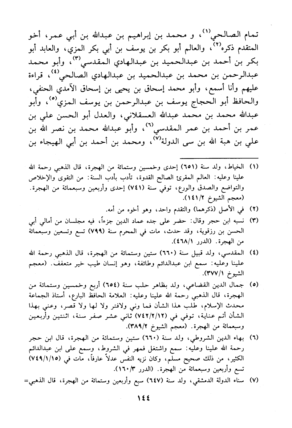 تَمَّامٍ الصَّالِحِيُّ، وَمُحَمَّدُ بْنُ إِبْرَاهِيمَ بْنِ عَبْدِ اللَّهِ بْنِ أَبِي عُمَرَ أَخُو الْمُتَقَدِّمُ ذِكْرُهُ، وَالْعَالِمُ أَبُو بَكْرِ بْنُ يُوسُفَ بْنِ أَبِي بَكْرٍ الْمَزِّيُّ، وَالْعَابِدُ أَبُو بَكْرِ بْنُ أَحْمَدَ بْنِ عَبْدِ الْحَمِيدِ بْنِ عَبْدِ الْهَادِي الْمَقْدِسِيُّ، وَأَبُو مُحَمَّدٍ عَبْدُ الرَّحْمَنِ بْنُ مُحَمَّدِ بْنِ عَبْدِ الْحَمِيدِ بْنِ عَبْدِ الْهَادِي الصَّالِحِيُّ قِرَاءَةً عَلَيْهِمْ وَأَنَا أَسْمَعُ، وَأَبُو مُحَمَّدٍ إِسْحَاقُ بْنُ يَحْيَى بْنِ إِسْحَاقَ الآمدِيُّ الْحَنَفِيُّ