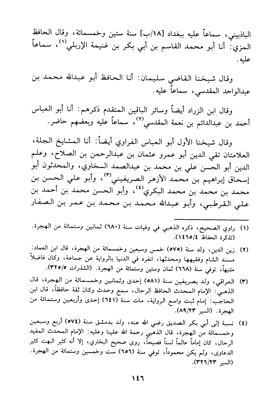 أَبُو عَبْدِ اللَّهِ مُحَمَّدُ بْنُ عَبْدِ الْوَاحِدِ الْمَقْدِسِيُّ، سَمَاعًا عَلَيْهِ وَقَالَ ابْنُ الزَّرَّادِ أَيْضًا وَسَائِرُ الْبَاقِينَ الْمُتَقَدِّمُ ذِكْرُهُمْ: أنا أَبُو الْعَبَّاسِ أَحْمَدُ بْنُ عَبْدِ الدَّائِمِ بْنِ نِعْمَةَ الْمَقْدِسِيُّ سَمَاعًا عَلَيْهِ وَبَعْضُهُمْ حَاضِرٌ وَقَالَ شَيْخُنَا الأَوَّلُ أَبُو الْعَبَّاسِ الْفُرَاوِيُّ أَيْضًا: أنا الْمَشَايِخُ الْجِلَّةُ الْعَلامَتَانِ تَقِيُّ الدِّينِ أَبُو عَمْرٍو عُثْمَانُ بْنُ عَبْدِ الرَّحْمَنِ بْنِ الصَّلاحِ، وَعَلَمُ الدِّينِ أَبُو الْحَسَنِ عَلِيُّ بْنُ مُحَمَّدِ بْنِ عَبْدِ الصَّمَدِ السّخَاوِيُّ، وَالْمُحَدِّثُونَ أَبُو إِسْحَاقَ إِبْرَاهِيمُ بْنُ مُحَمَّدٍ الأَزْهَرُ الصَّرِيفِينِيُّ، وَأَبُو عَلِيٍّ الْحَسَنُ بْنُ مُحَمَّدِ بْنِ مُحَمَّدِ بْنِ مُحَمَّدٍ الْبَكْرِيُّ، وَأَبُو الْحَسَنِ مُحَمَّدُ بْنُ أَحْمَدَ بْنِ عَلِيٍّ الْقُرْطُبِيُّ، وَأَبُو عَبْدِ اللَّهِ مُحَمَّدُ بْنُ مُحَمَّدِ بْنِ عُمَرَ بْنِ الصَّفَّارِ