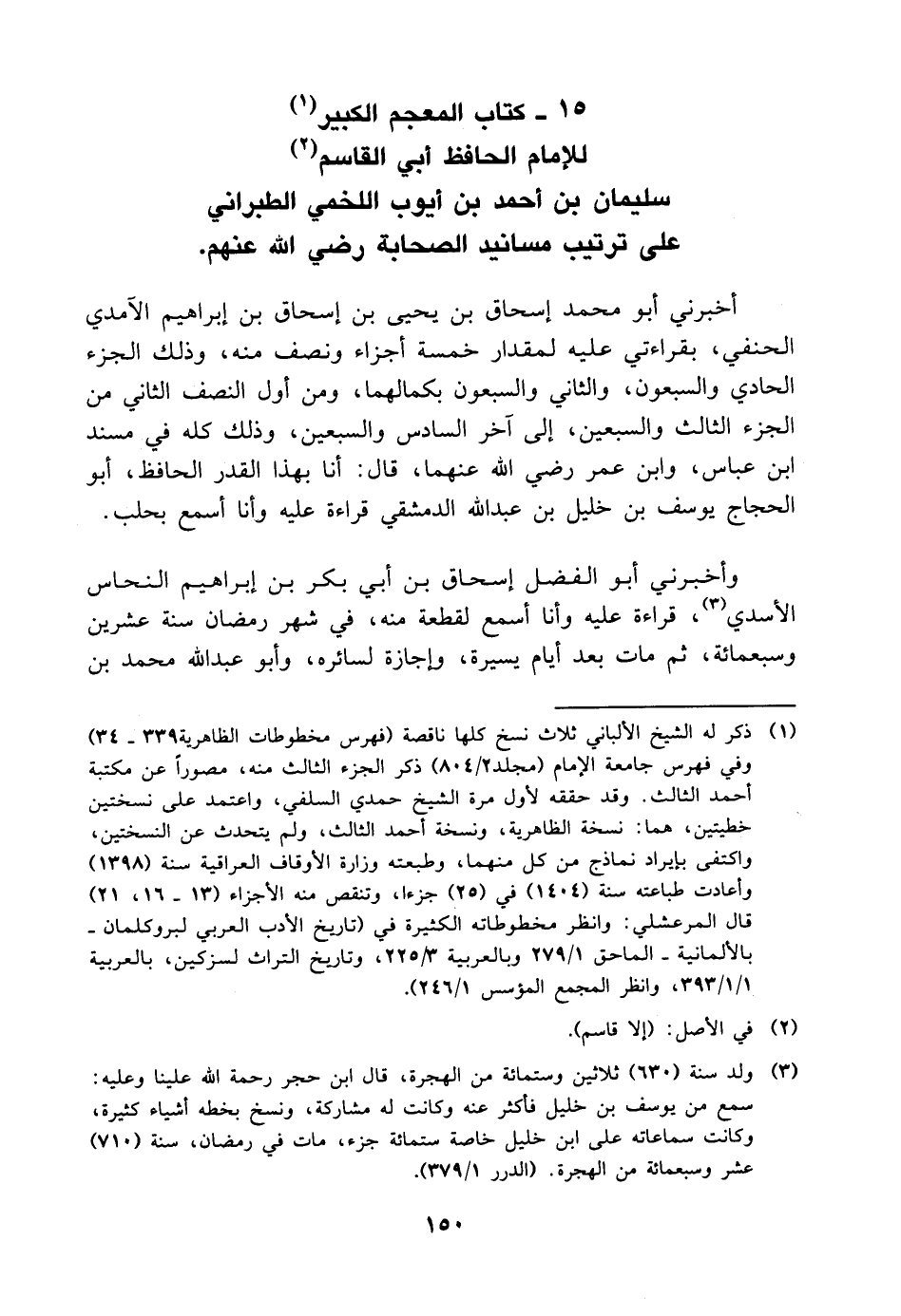 كِتَابُ الْمُعْجَمِ الْكَبِيرِ لِلإِمَامِ الْحَافِظِ أَبِي الْقَاسِمِ سُلَيْمَانَ بْنِ أَحْمَدَ بْنِ أَيُّوبَ اللَّخْمِيِّ الطَّبَرَانِيُّ عَلَى تَرْتِيبِ مَسَانِيدِ الصَّحَابَةِ رَضِيَ اللَّهُ عَنْهُمْ