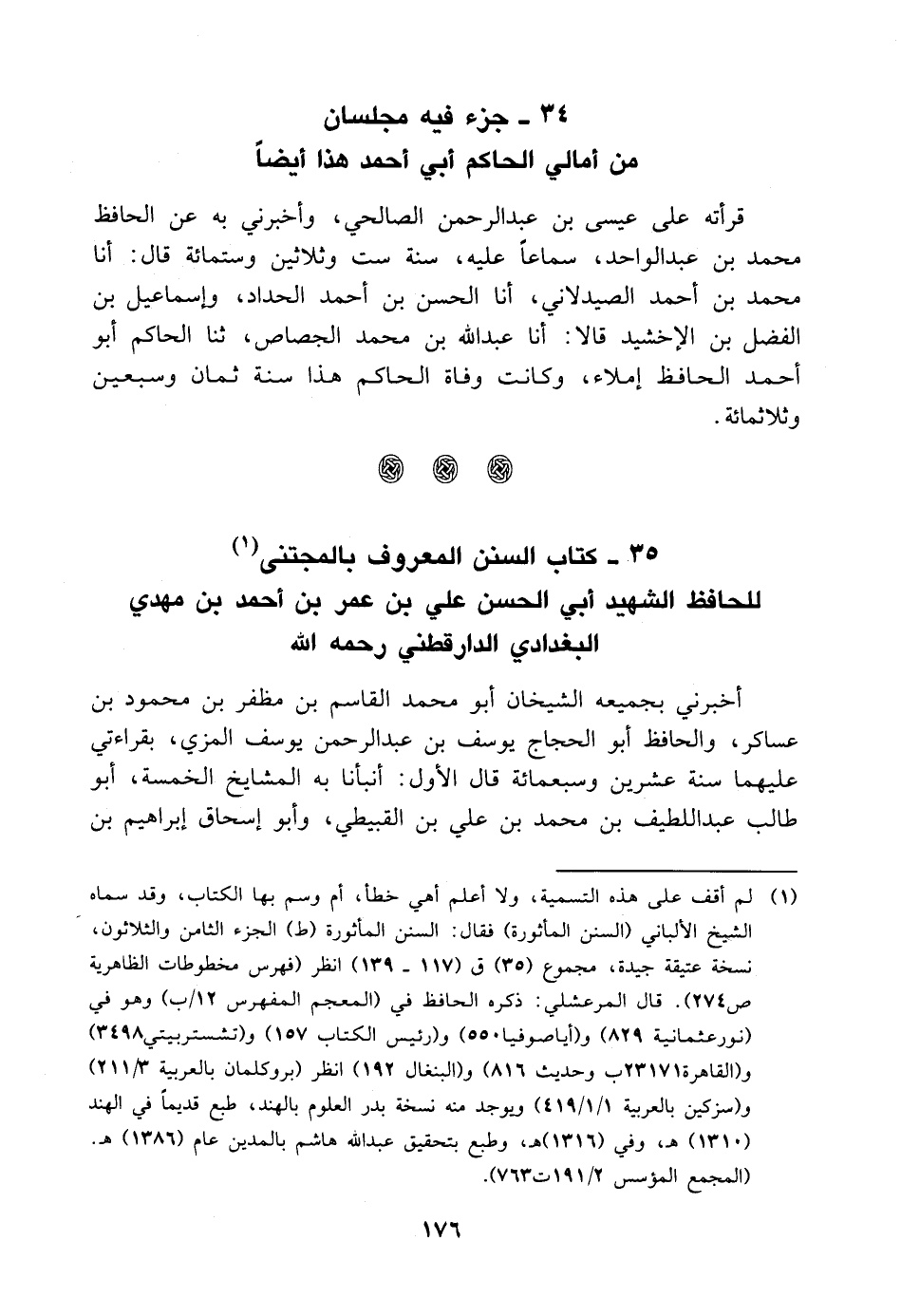 كِتَابُ السُّنَنِ الْمَعْرُوفُ بِالْمُجْتَنَى لِلْحَافِظِ الشَّهِيدِ أَبِي الْحَسَنِ عَلِيِّ بْنِ عُمَرَ بْنِ أَحْمَدَ بْنِ مَهْدِيٍّ الْبَغْدَادِيِّ الدَّارَقُطْنِيِّ رَحِمَهُ اللَّهُ