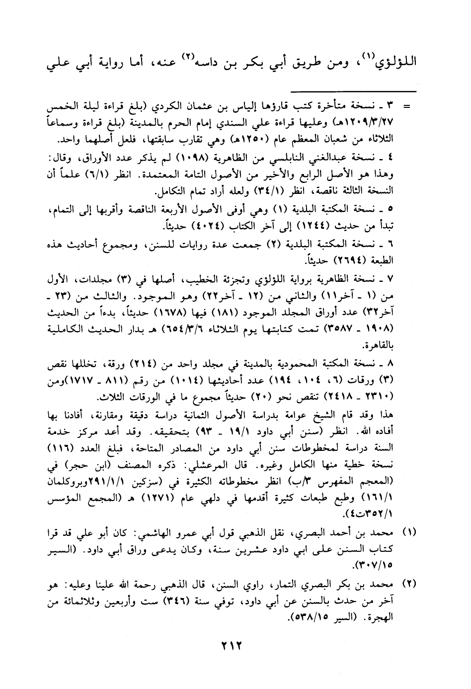 اللؤلؤي، ومن طريق أَبِي بكر بْن داسه عنه، أما رواية أَبِي علي