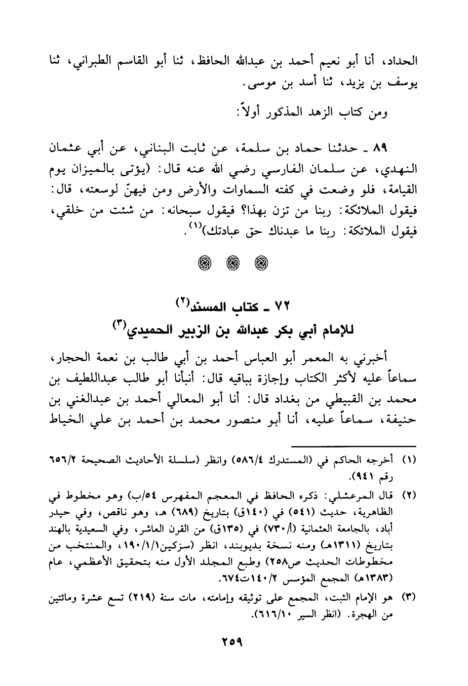 كتاب المسند للإمام أَبِي بكر عَبْد اللَّه بْن الزبير الحميدي
