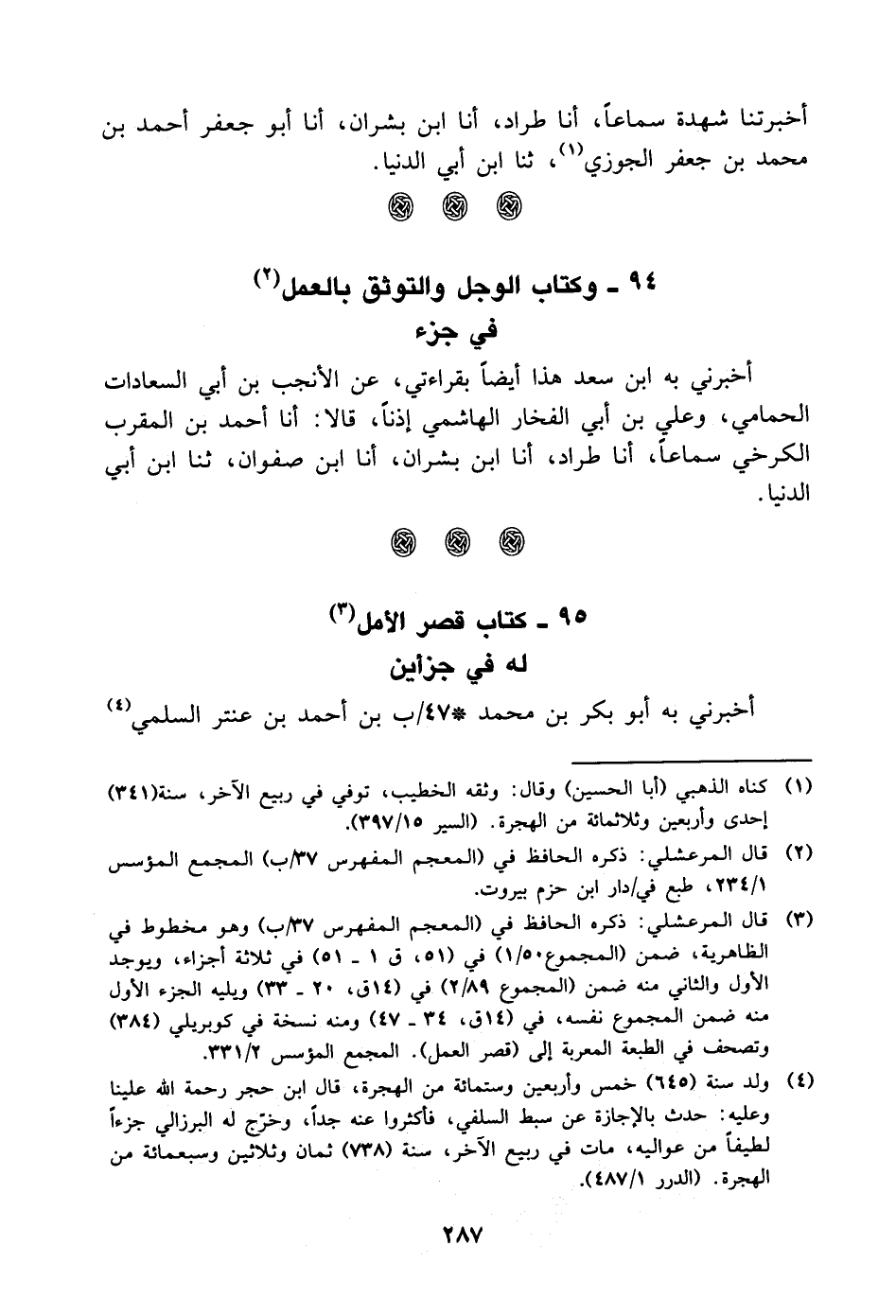 في جزء أخبرني به ابن سعد هذا أيضا بِقِرَاءَتِي، عن الأنجب بْن أَبِي السعادات الحمامي، وعلي بْن أَبِي الفخار الهاشمي إذنا، قالا: أنا أحمد بْن المقرب الكرخي سماعا، أنا طراد، أنا ابن بشران، أنا ابن صفوان، ثنا ابن أَبِي الدنيا