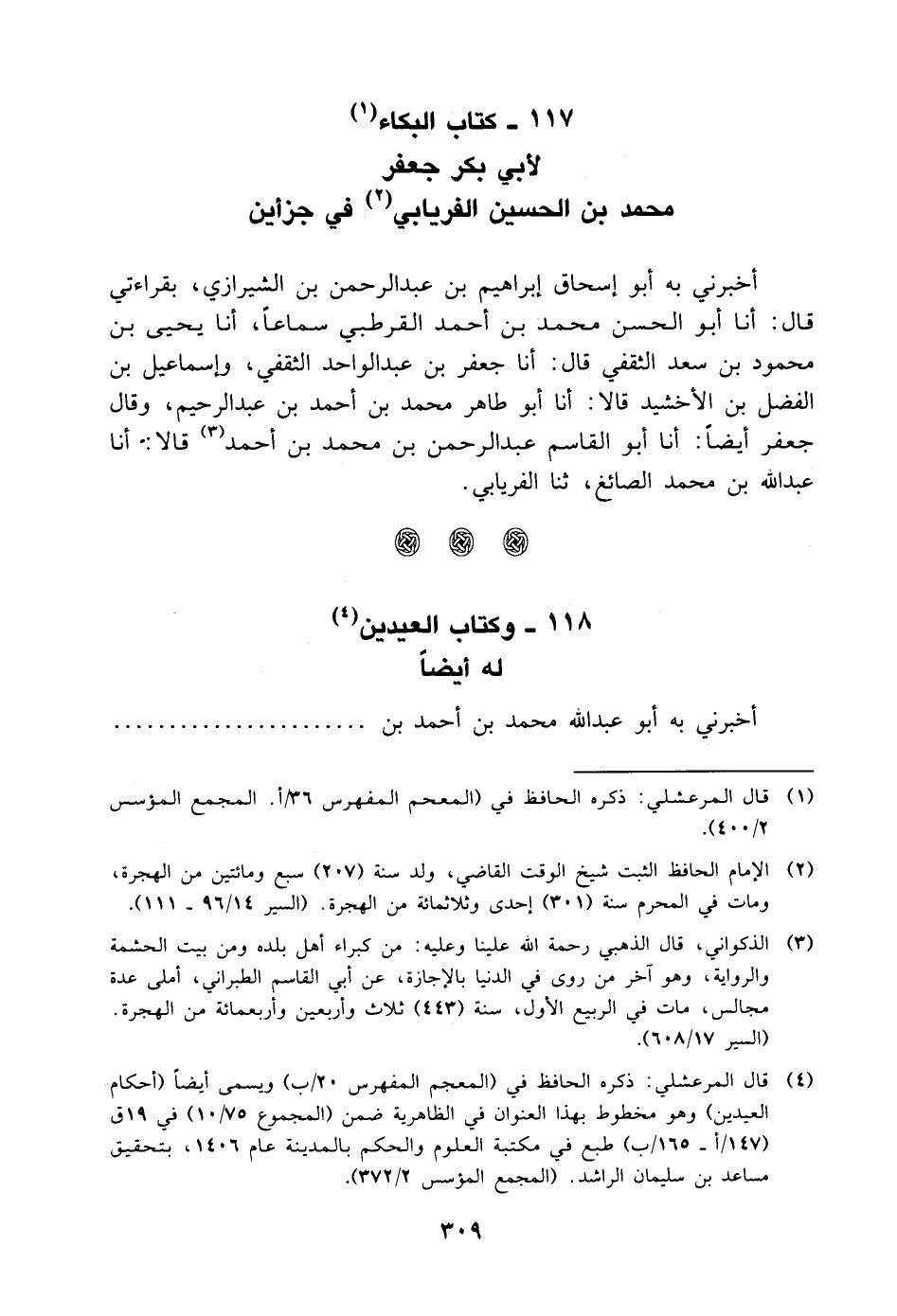 كتاب البكاء لأبي بكر جعفر مُحَمَّد بْن الحسين الفريابي