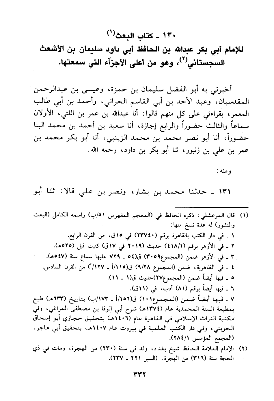 كتاب البعث للإمام أَبِي بكر عَبْد اللَّه بْن الحافظ أَبِي داود سليمان بْن الأشعث السجستاني