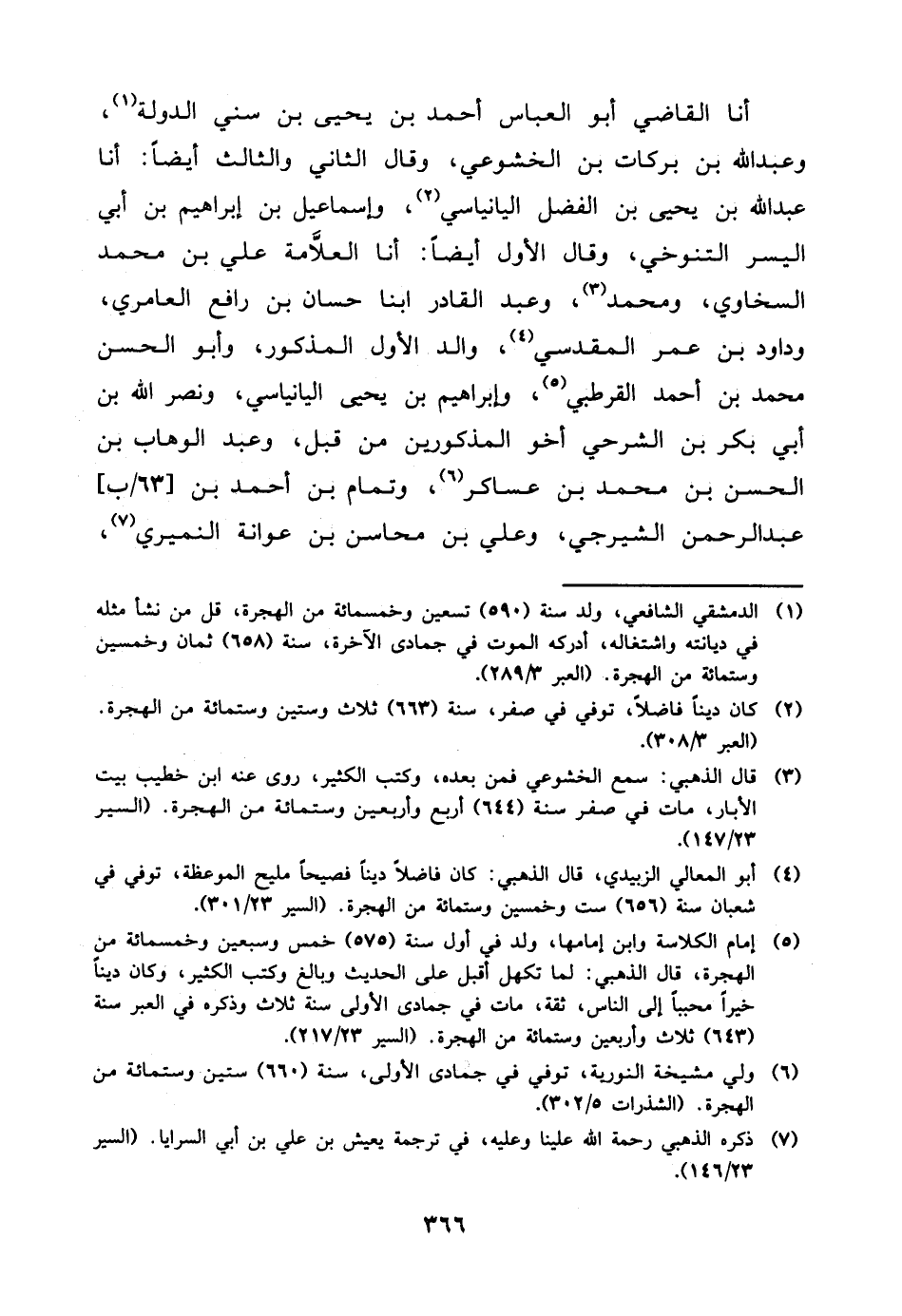 أنا القاضي أَبُو العباس أَحْمَد بْن يحيى بْن سني الدولة، وعبد اللَّه بْن بركات بْن الخشوعي، وقال الثاني والثالث أيضا: أنا عَبْد اللَّه بْن يحيى بْن الفضل اليانياسي، وإسماعيل بْن إبراهيم بْن أَبِي اليسر التنوخي، وقال الأول أيضا: أنا العلامة علي بْن مُحَمَّد السخاوي، ومحمد، وعبد القادر ابنا حسان بْن رافع العامري، وداود بْن عمر الْمَقْدِسِيّ، والد الأول المذكور، وأبو الحسن مُحَمَّد بْن أَحْمَد القرطبي، وإبراهيم بْن يحيى اليانياسي، ونصر اللَّه بْن أَبِي بكر بْن الشرحي أخو المذكورين من قبل، وعبد الوهاب بْن الحسن بْن مُحَمَّد بْن عساكر، وتمام بْن أَحْمَد بْن عَبْد الرحمن الشيرجي، وعلي بْن محاسن بْن عوانة النميري،
