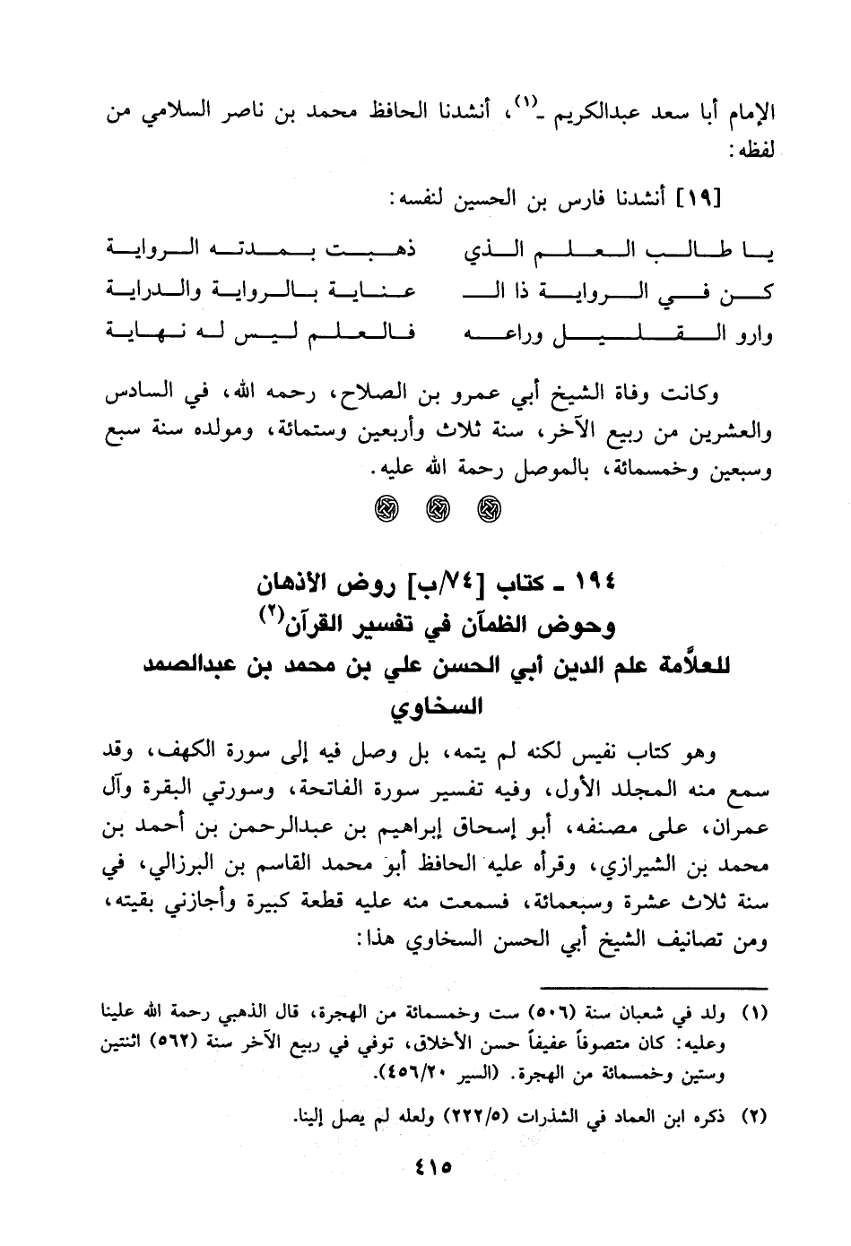 كتاب روض الأذهان وحوض الظمآن في تفسير القرآن للعلامة علم الدين أَبِي الحسن علي بْن مُحَمَّد بْن عَبْد الصمد السخاوي