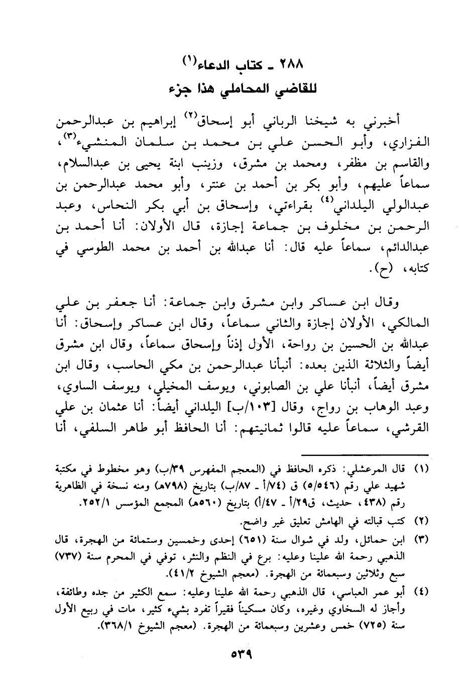 كتاب الدعاء للقاضي المحاملي هذا جزء