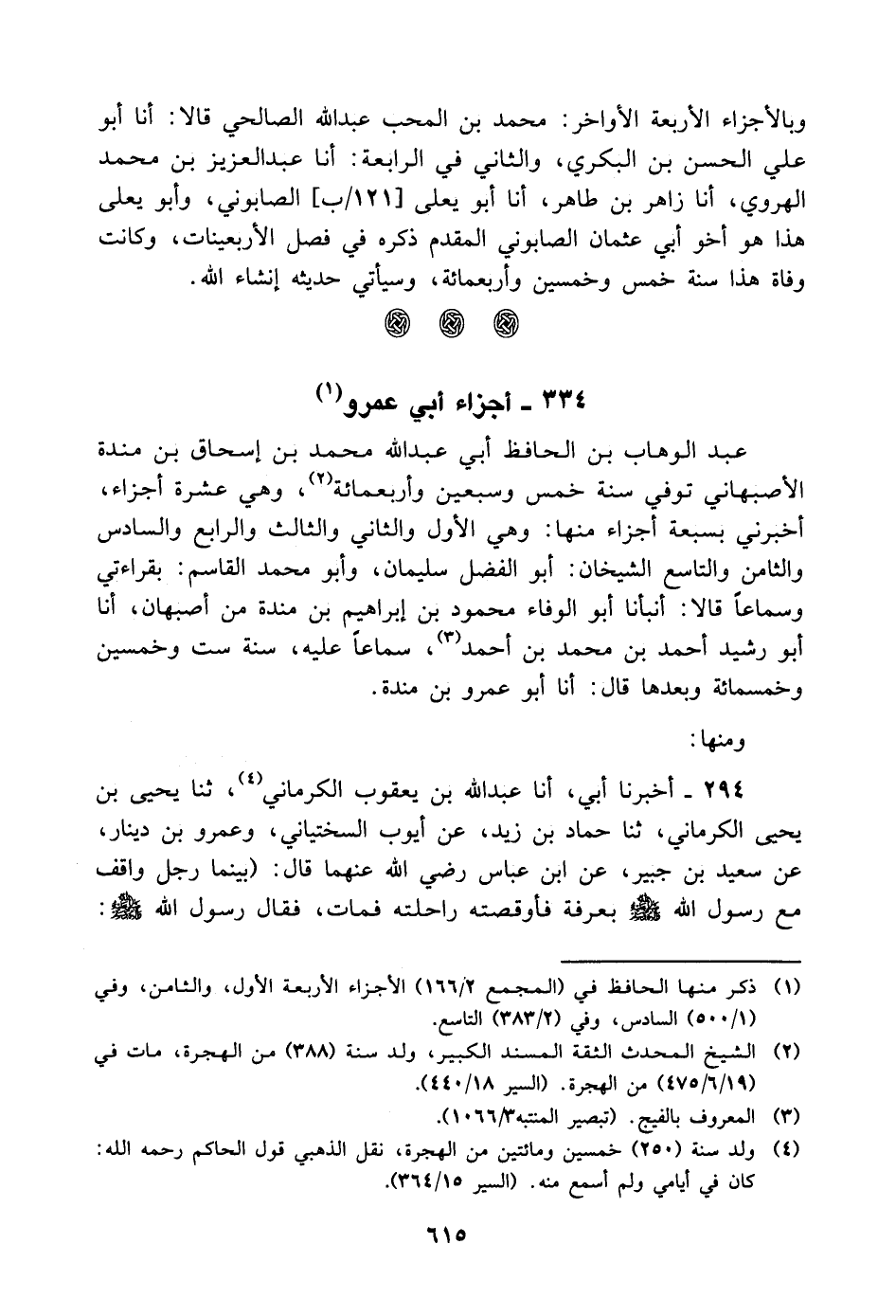 عبد الوهاب بن الحافظ أبي عبد الله مُحَمَّد بن إسحاق بن منده الأصبهاني توفي سنة خمس وسبعين وأربع مائة، وهي عشرة أجزاء، أخبرني بسبعة أجزاء منها: وهي الأول والثاني والثالث والرابع والسادس والثامن والتاسع الشيخان: أبو الفضل سليمان، وأبو مُحَمَّد القاسم: بقراءتي وسماعا قالا: أنبأنا أبو الوفاء محمود بن إبراهيم بن منده من أصبهان، أنا أبو رشيد أحمد بن مُحَمَّد بن أحمد، سماعا عليه، سنة ست وخمسين وخمس مائة وبعدها قال: أنا أبو عمرو بن منده ومنها: