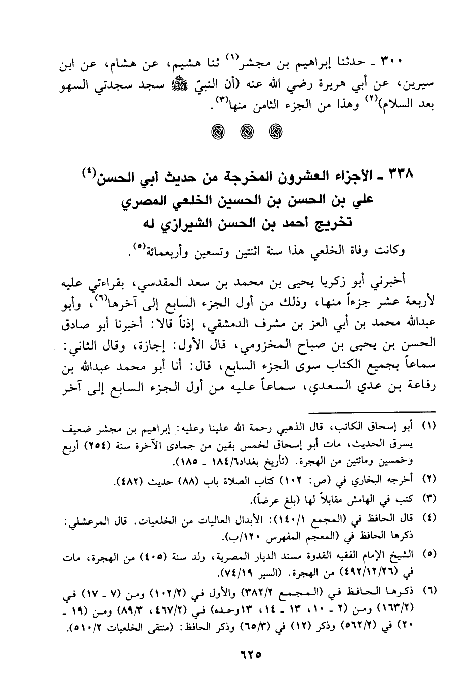 الأجزاء العشرون المخرجة من حديث أبي الحسن علي بن الحسن بن الحسين الخلعي المصري تخريج أحمد بن الحسن الشيرازي له