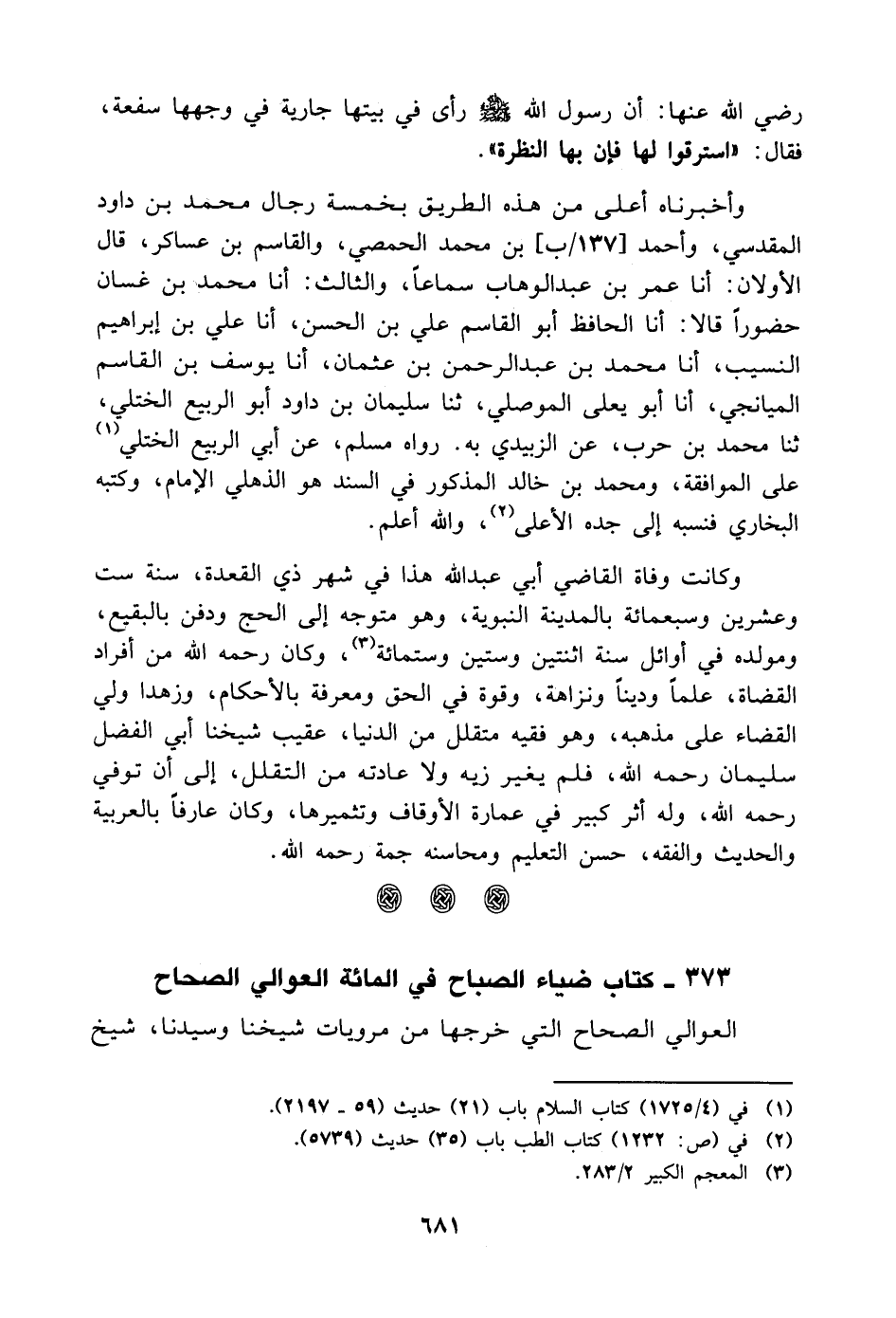كتاب ضياء الصباح في المائة العوالي الصحاح