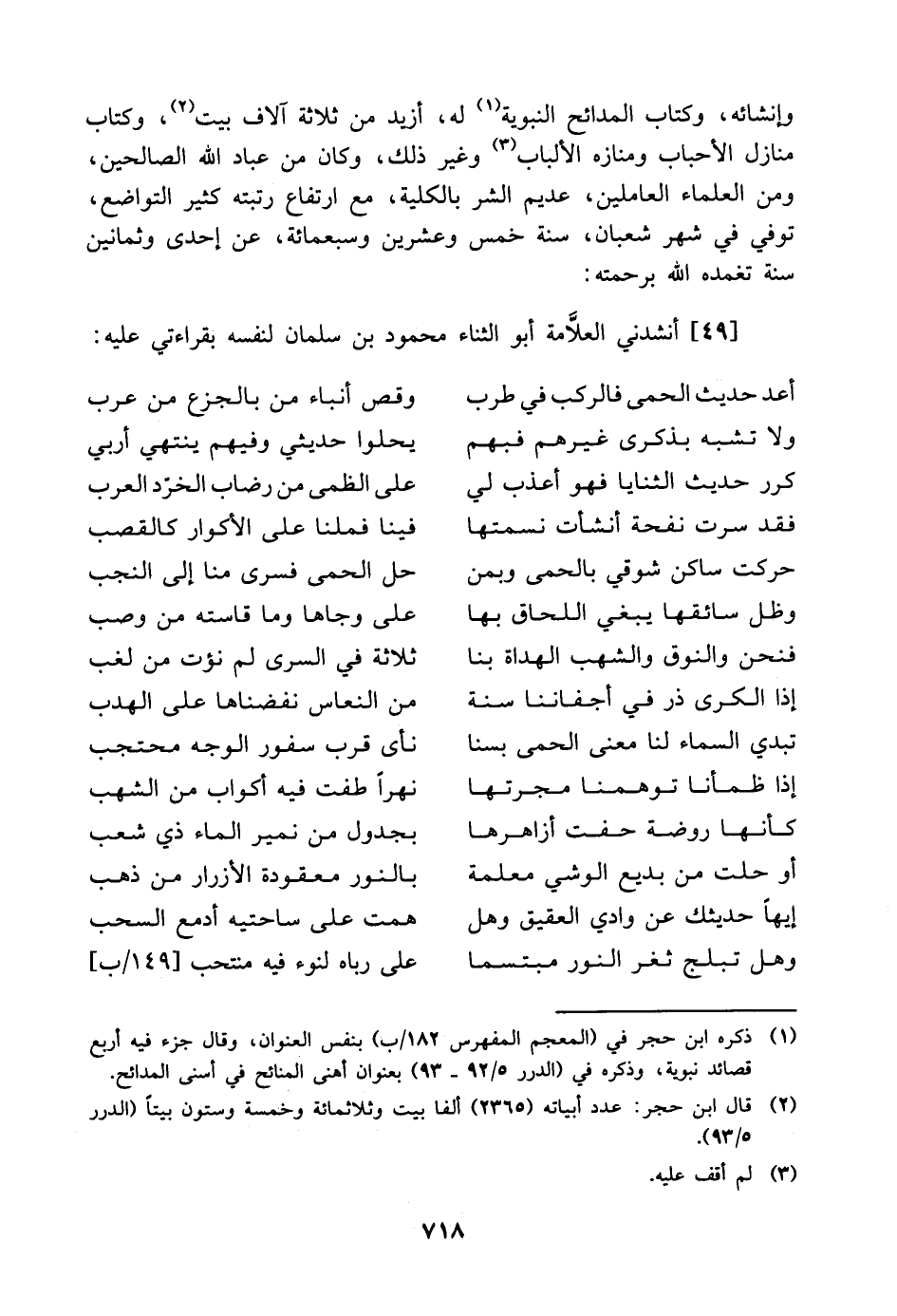 ، توفي في شهر شعبان، سنة خمس وعشرين وسبع مائة، عن إحدى وثمانين سنة تغمده الله برحمته: أنشدني العلامة أبو الثناء محمود بن سلمان لنفسه بقراءتي عليه: