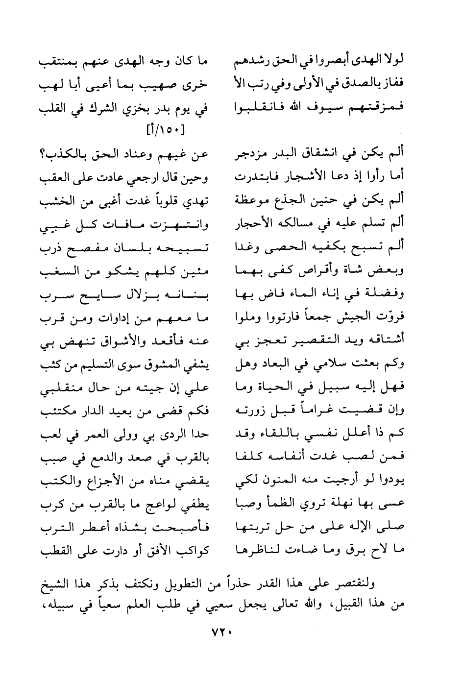 ولنقتصر على هذا القدر حذرا من التطويل ونكتف بذكر هذا الشيخ من هذا القبيل، والله تعالى يجعل سعيي في طلب العلم سعيا في سبيله،
