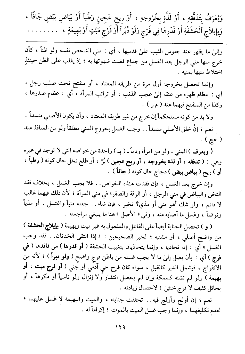 وأن خرج بعد الغسل، فإن فقدت هذه الخواص .. فلا يجب الغسل، بخلاف فقد الثخن والبياض في مني الرجل، أو الرقة والصفرة في مني المرأة؛ لأن ذلك فيهما غالب لا دائم، ولو شك أهو مني أو مذي؟ تخير، فإن شاء .. جعله منياً واغتسل، أو مذياً وتوضأ، وغسل ما أصابه منه، وفي "الأصل" هنا ما ينبغي مراجعته.
